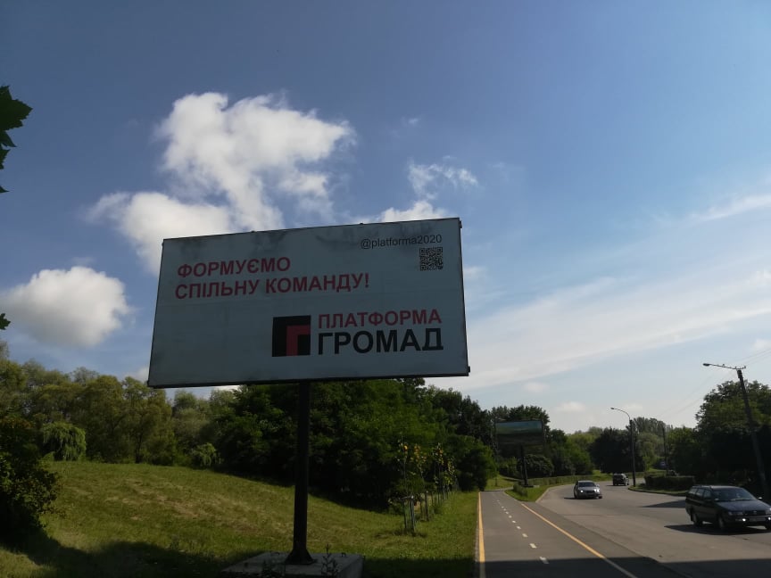 В Івано-Франківську, Коломиї, Косові та Верховині розміщені білборди політичної партії «Платформа громад» із написами: «Формуємо Спільну Команду. Платформа громад» та «З людьми та для людей. Платформа громад».