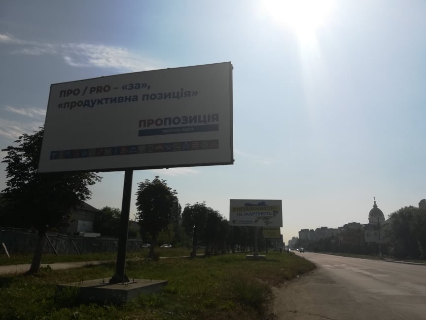 Так само в Івано-Франківську є білборди політичної партії «Пропозиція» – « ПРО /PRO, - «за». Продуктивна позиція».