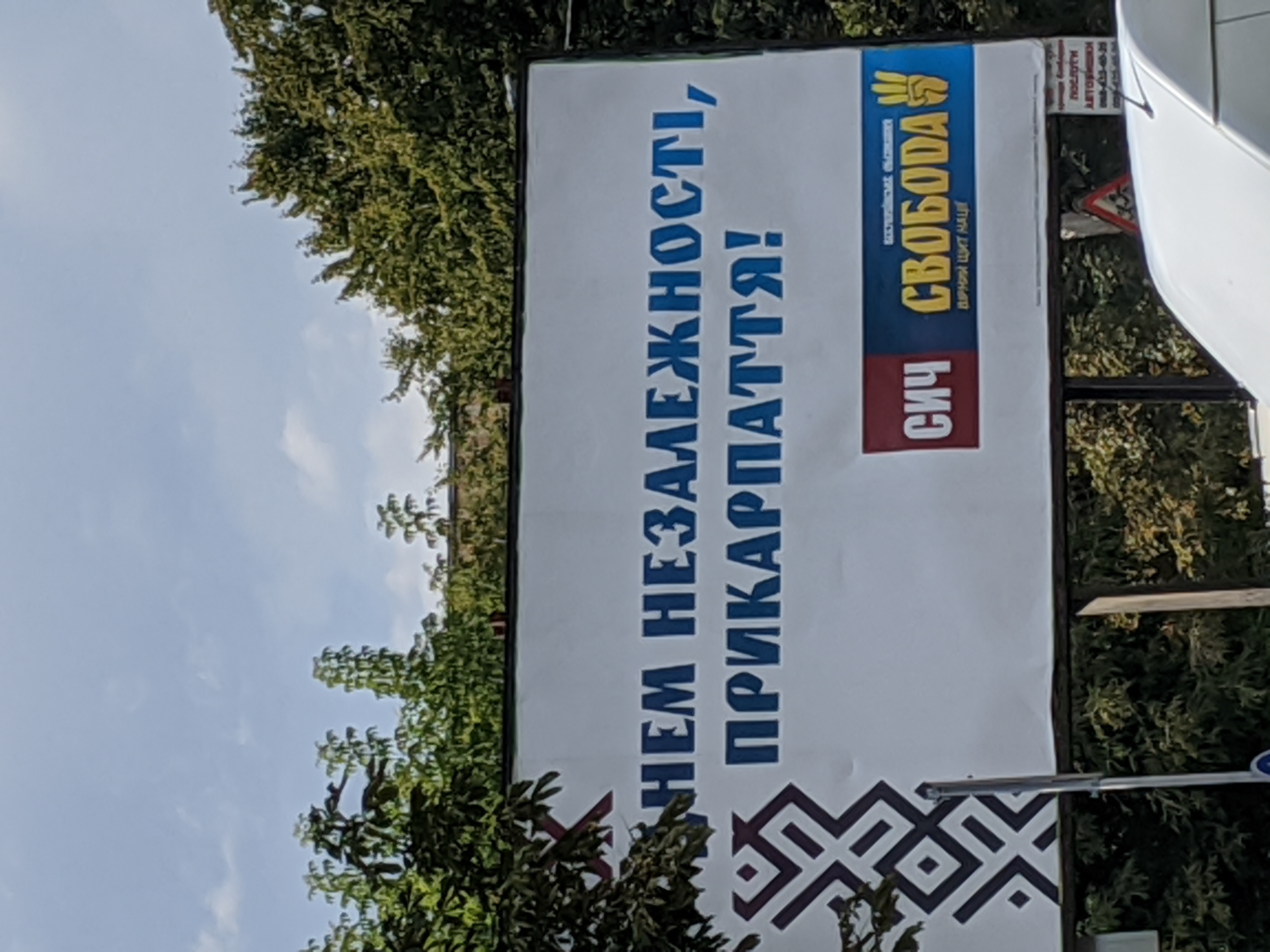 У Косові та Калуші розміщенні білборди із привітанням від голови обласної ради Олександра Сича з Днем Незалежності, де згадується ВО «Свобода».