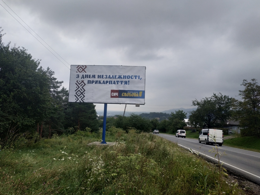 Також у Калуші розміщено політичну рекламу ВО «Свободи» – привітання із Днем Незалежності.