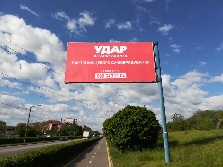 В Івано-Франківську також можна знайти зовнішню рекламу «Української Галицької партії» та партії УДАР із надписом – «УДАР. Віталія Кличка. Партія місцевого самоврядування».