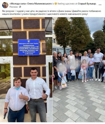 Ймовірний кандидат Олег Малиновський на сторінці ГО “Молода сила Олега Малиновського” розмістив допис про те, що 1 вересня відвідав ЗОШ №12.