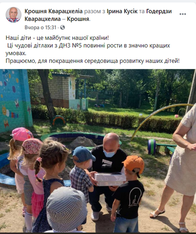 “Наші діти - це майбутнє нашої країни! Ці чудові дітлахи з ДНЗ №5 повинні рости в значно кращих умовах. Працюємо, для покращення середовища розвитку наших дітей!”, – написав він на своїй сторінці.