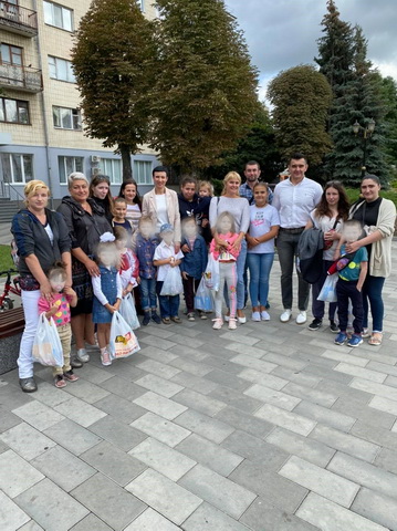 На фото видно, що діти тримають в руках пакети ймовірно з подарунками. З Малиновським на фото і потенційна кандидатка в мери, голова міського осередку партії “Опозиційна платформа – За життя!” Наталія Леонченко, яка є чинною депутаткою міської ради.