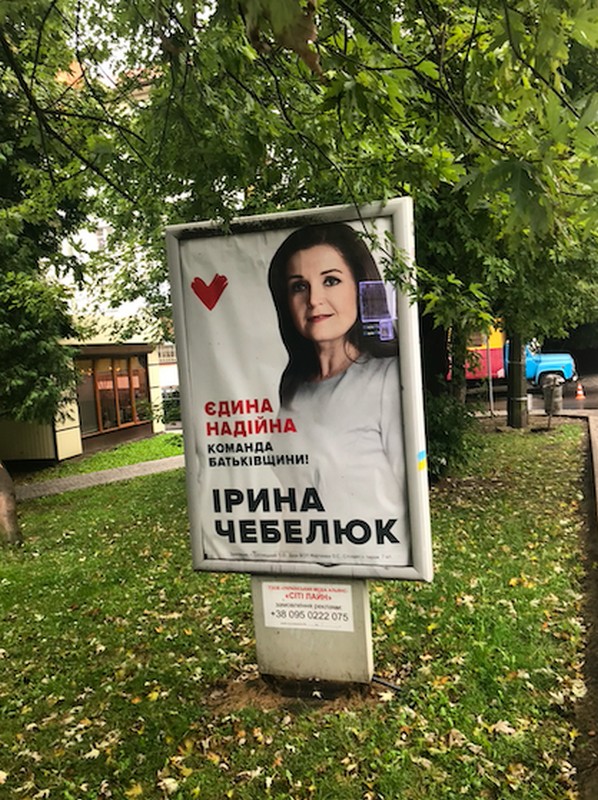 Після старту виборчого процесу представники ОПОРИ зафіксували нові випадки розміщення зовнішньої реклами, спрямованої на популяризацію серед виборців потенційних кандидатів. Йдеться, зокрема, про рекламні площі у Луцьку та районі на користь потенційної кандидатки Ірини Чебелюк від ВО «Батьківщина». Виявили білборди та сітілайт із її фото та іменем,  а також текстом «Єдина надійна команда Батьківщини». Постери, до слова, містять вихідні дані: замовник, підприємець, що здійснив друк та тираж.