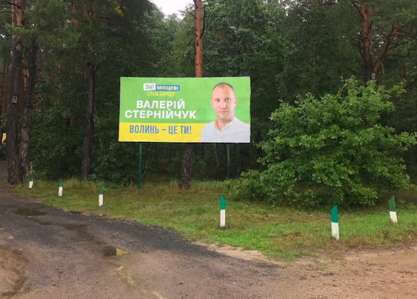 6 вересня поблизу міста Каменя-Каширського представником ОПОРИ було виявлено білборд на користь потенційного кандидата, чинного народного депутата і лідера партії «Слуга народу» на Волині Валерія Стернійчука. Поряд із зображенням політика міститься надпис: «Зе! Місцеві. Слуга народу. Валерій Стернійчук. Волинь – це ти».