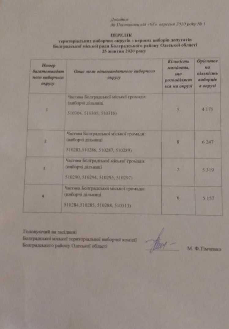 Болградська міська територіальна виборча комісія Одеської області постановою від 8 вересня утворила виборчі округи з перших виборів депутатів Болградської міської ради.