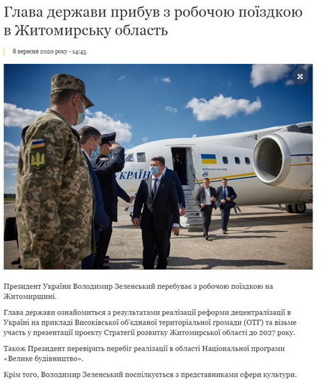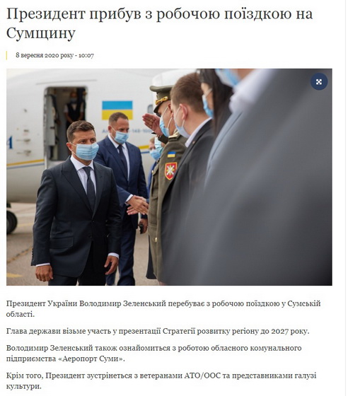 О 10.07 на сайті президента з'явилась новина, що Володимир Зеленський з робочою поїздкою прибув на Сумщину і жодного слова про наміри відвідати Житомирщину.