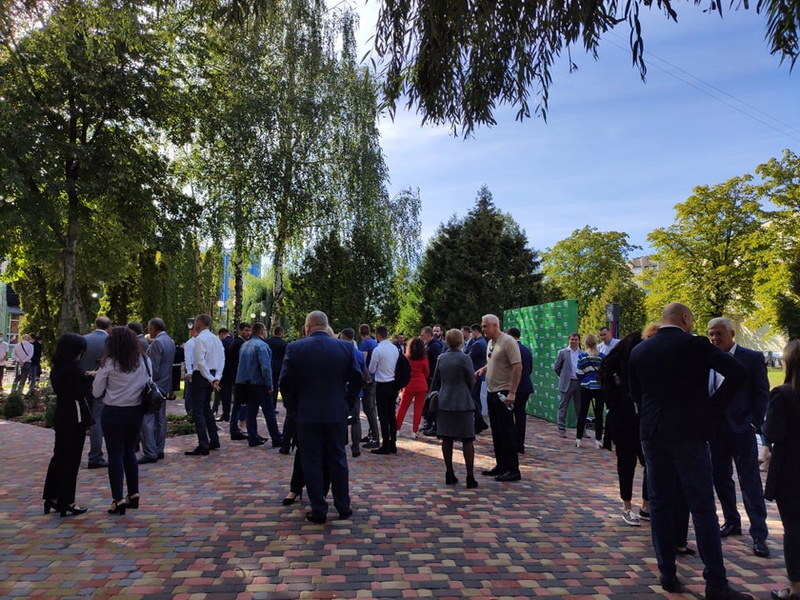 У подвір'ї університету встановили сцену з екраном, розставили стільці для учасників. Біля сцени зелений банер з написом: “ЗЕ! місцеві Житомирщина”, такий же логотип та напис на трибуні. На території університету був партійний банер для фотозони. Перед входом розмістили коридор з металошукачів.