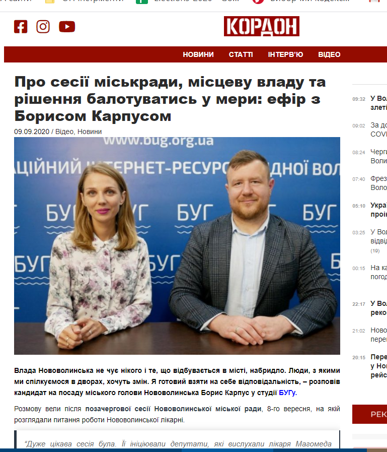 Також 8 вересня на усіх трьох виданнях з’явилися публікації, присвячені результатам ефіру за участі Бориса Карпуса у студії «БУГу». Тут його також називають кандидатом.