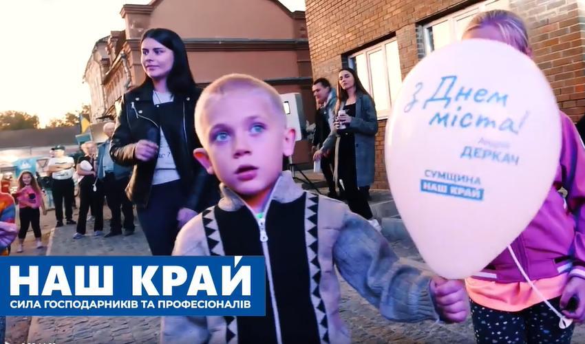 Схоже свято провели в Охтирці на День міста. Там теж роздавали кульки з написом: «Зі святом! Андрій Деркач. Сумщина наш край» та провели святковий концерт на фоні банера: «Зі святом рідне місто, Охтирка! Наш край. Сила господарників та професіоналів. Андрій Деркач».Відео заходу опублікували на сторінці «Наш край. Сумщина» у Facebook.