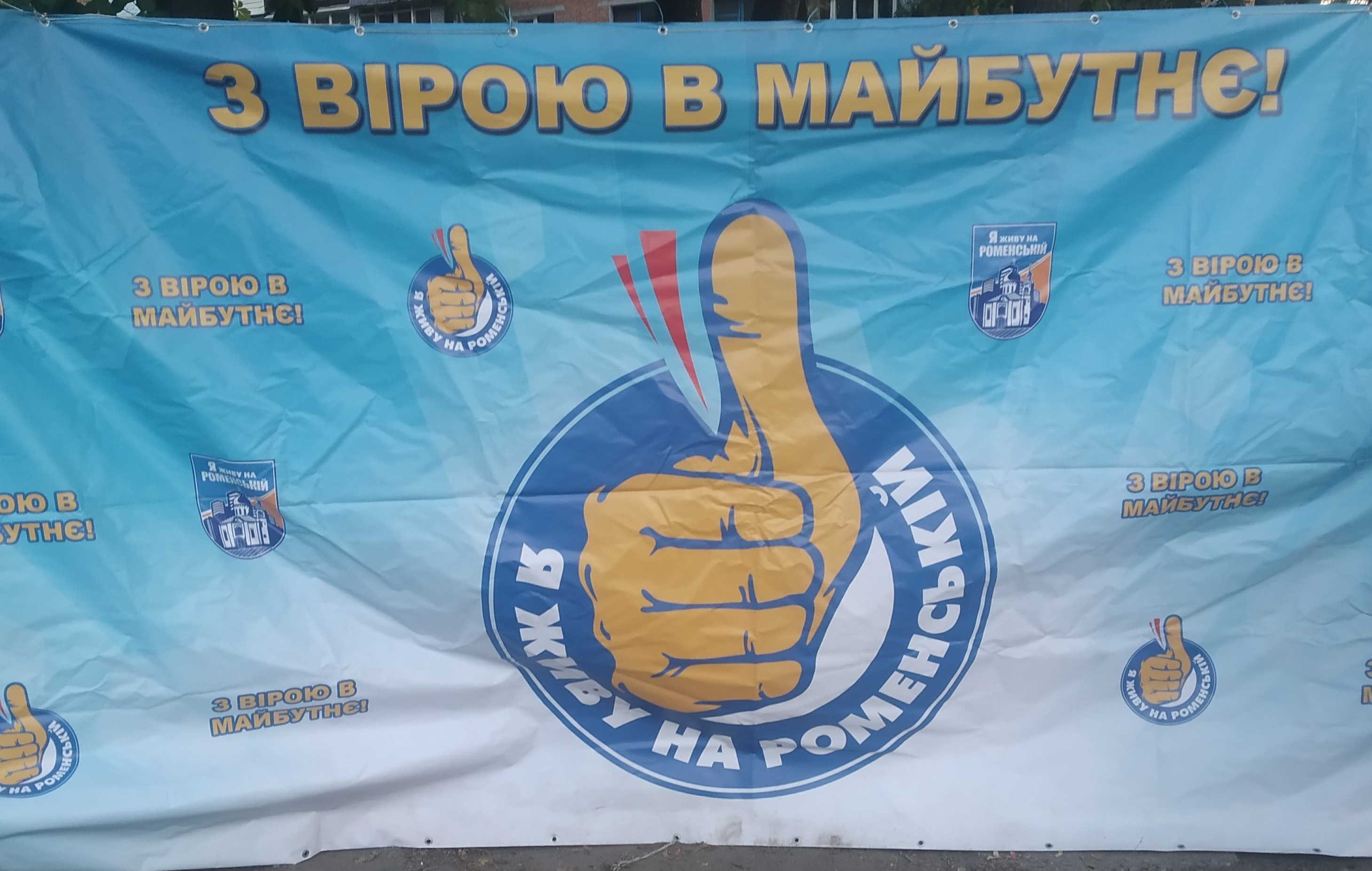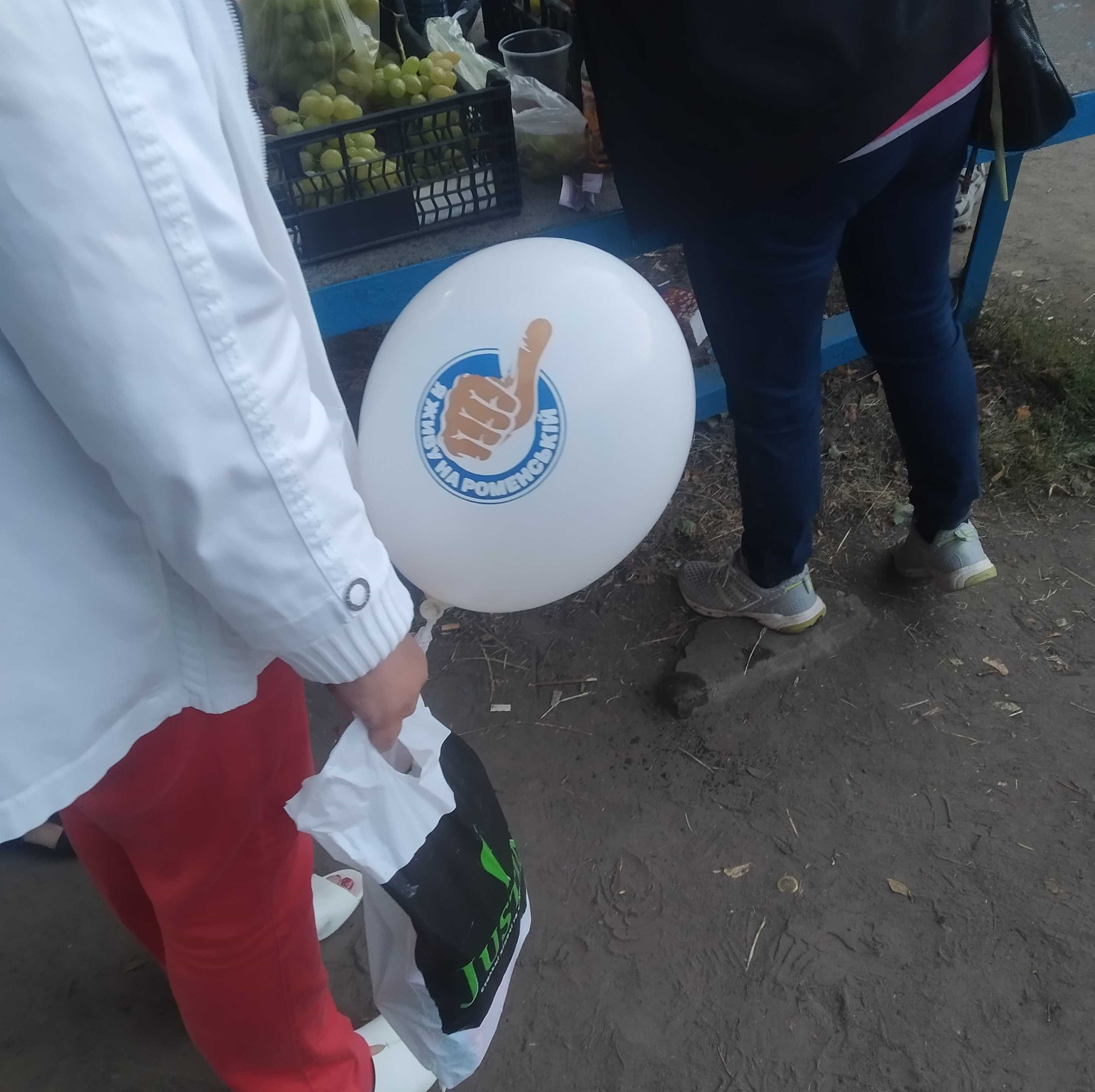 16 вересня на святкування Дня міста Ромни спостерігачі ОПОРИ зафіксували проведення розважального свята для дітей, де роздавали кульки з написом: «З Днем міста! Андрій Деркач. Сумщина наш край».