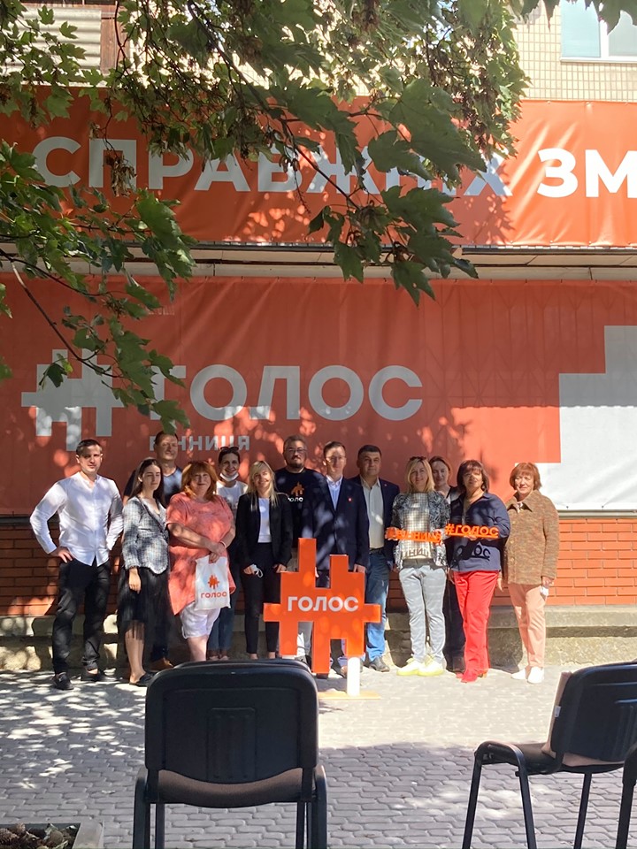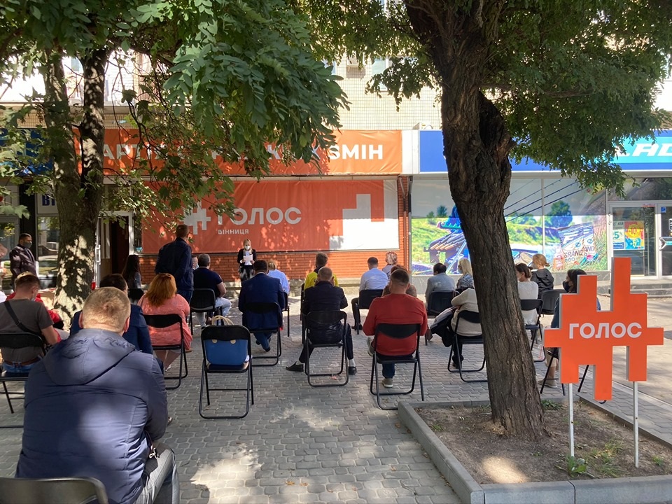 19 вересня біля партійного офісу на Хмельницькому шосе відбулась і конференція місцевого осередку партії «Голос». На ній, зокрема, було представлено лідерів списку до міської ради та кандидатуру чинного народного депутата Олександри Устінової на посаду Вінницького міського голови.