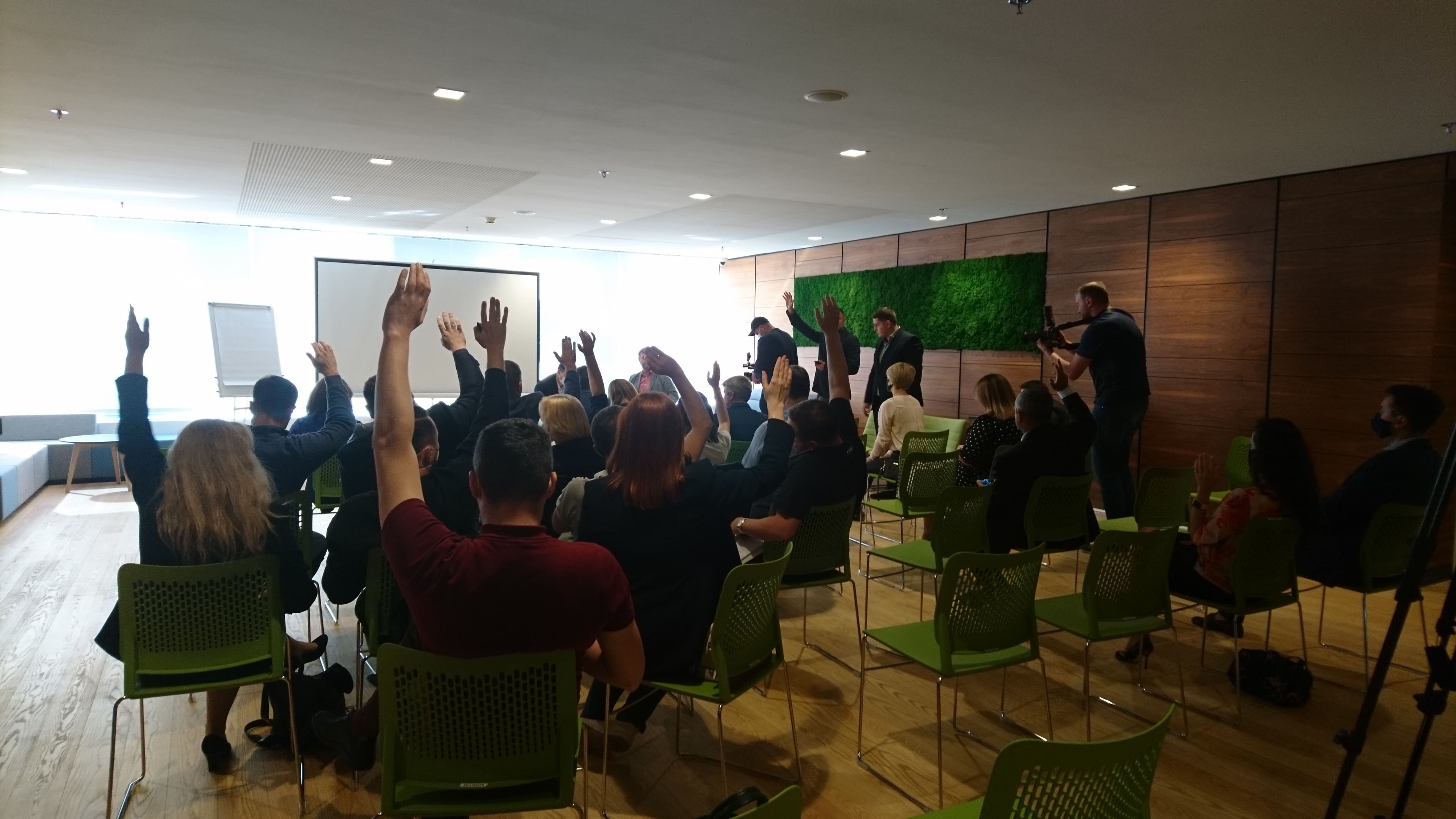У Києві 22 вересня, о 13:12, в Конгресно-виставковковому центрі “Парковий”, що знаходиться за адресою Паркова дорога, 16a, відбулась повторна конференція Київської міської організації політичної партії “Слуга народу”, яку скликали за рішенням Вищої ради партії.