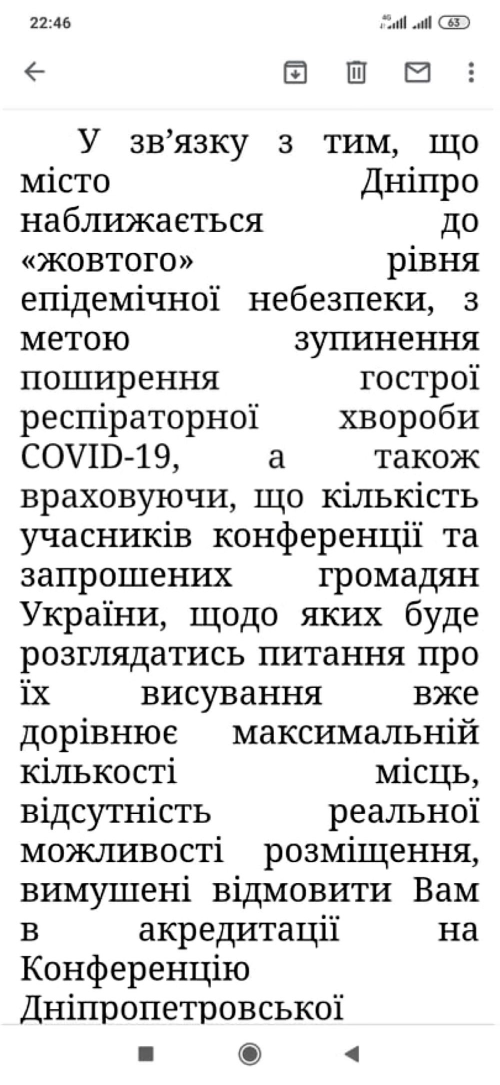 Натомість спостерігачі ОПОРИ безперешкодно були акредитовані на конференцію Криворізької міської організації партії «Слуга народу». Нагадаємо, Дніпропетровська область за рівнем епідеміологічної небезпеки поширення COVID-19 знаходиться в зеленій зоні.