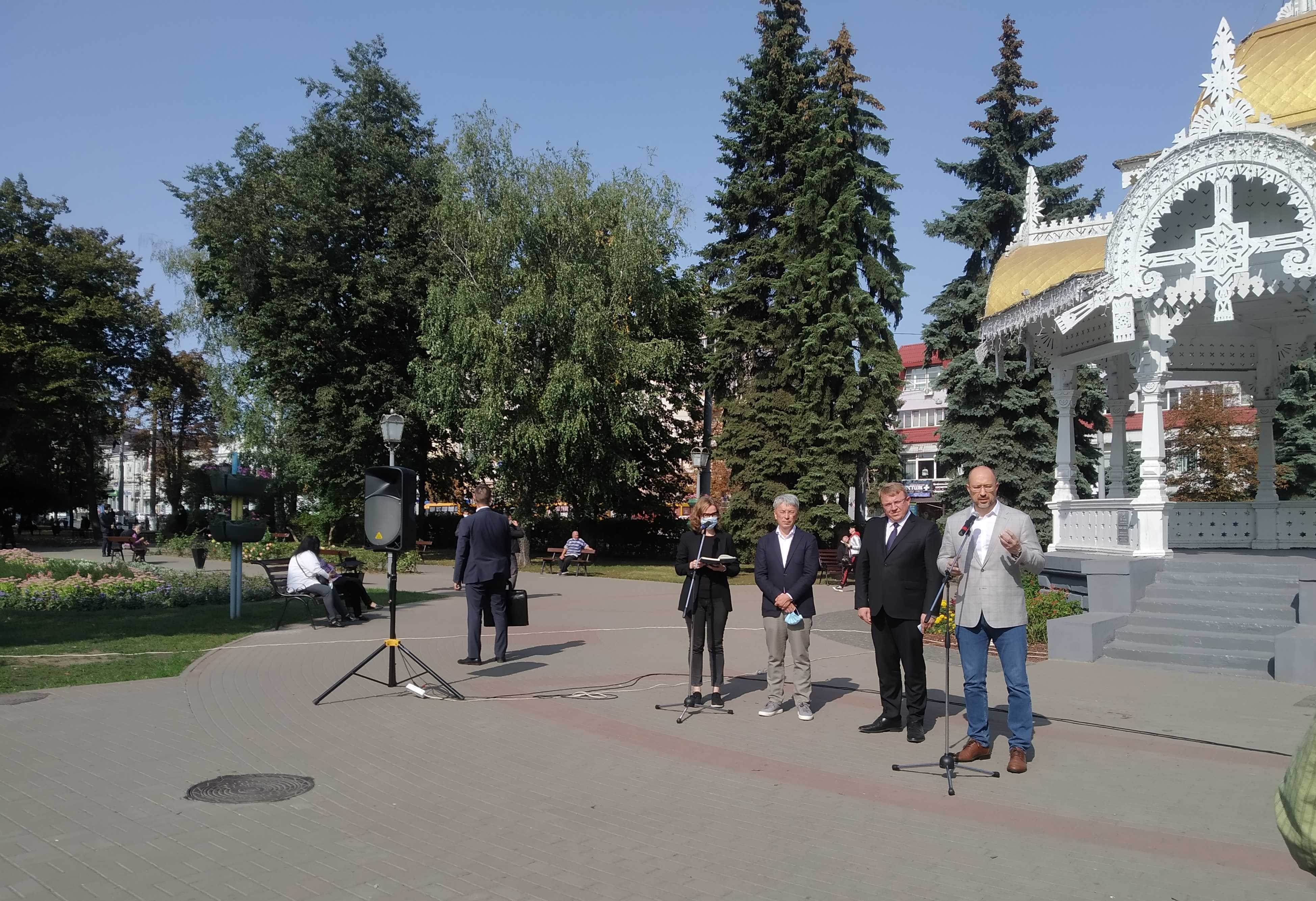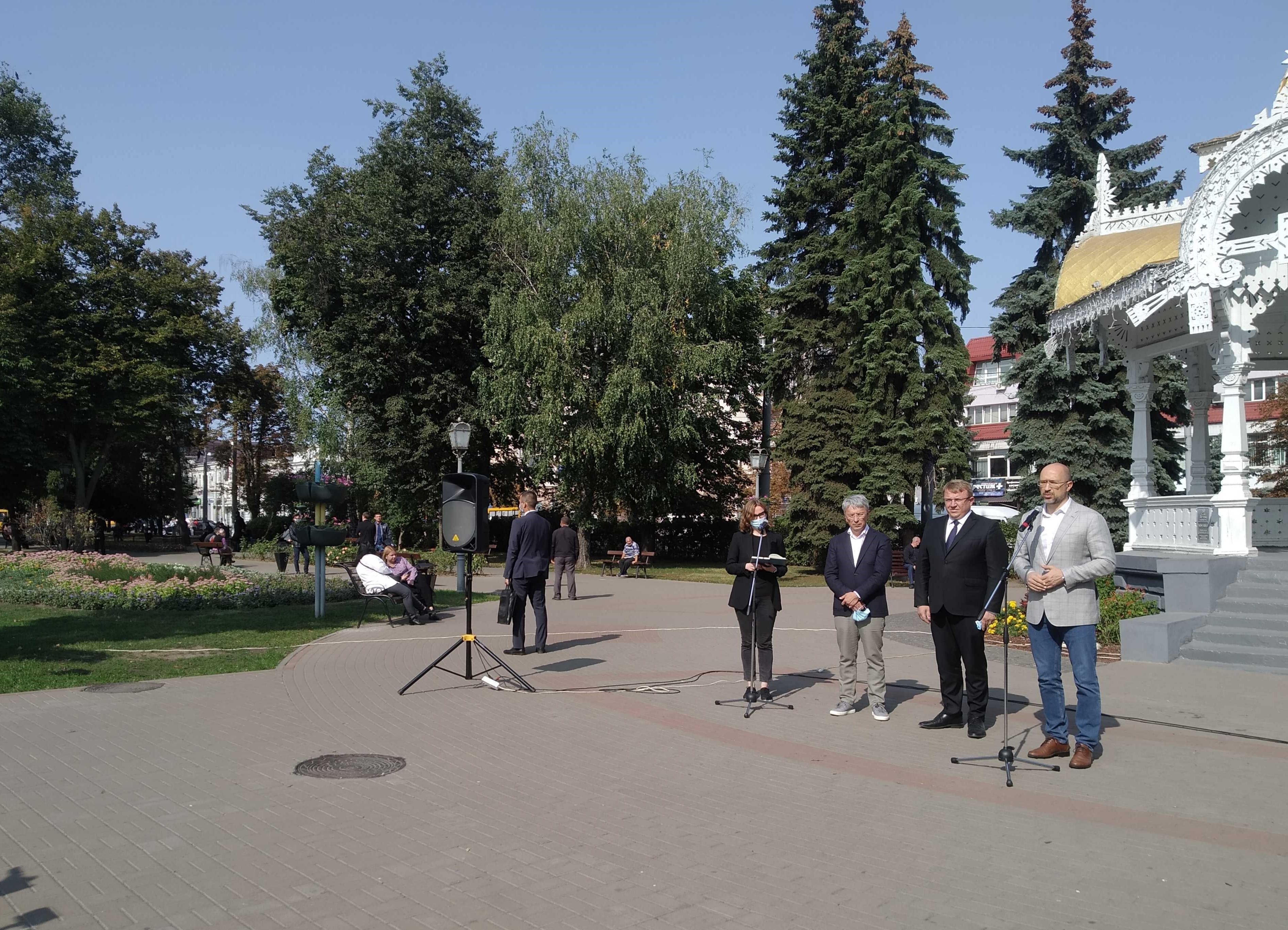 Біля «Альтанки» в центрі міста Суми провели брифінг з прем’єр-міністром Денисом Шмигалем, головою Сумської обласної державної адміністрації Романом Грищенком та Міністром культури та інформаційної політики Олександром Ткаченком. На заході був присутній спостерігач ОПОРИ. Під час зустрічі Прем’єр-міністр, зазначив що на нараді підіймали питання туристичного розвитку міста Суми, створення медичного містечка та готовності міста до опалювального сезону.