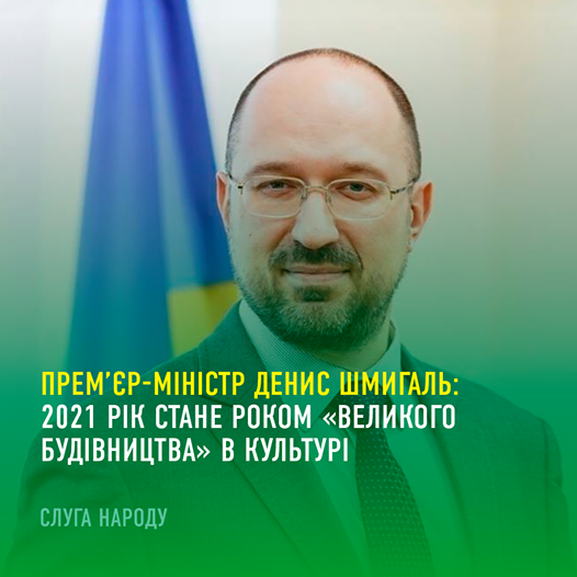 При цьому на офіційній сторінці «Слуга народу Cумщина» у Facebook також опублікували допис про візит Прем’єр-міністра в Суми. На фотографії із зображенням Дениса Шмигаля є напис: «Прем’єр-міністр Денис Шмигаль: 2021 рік стане роком «Великого будівництва в культурі». Слуга Народу».