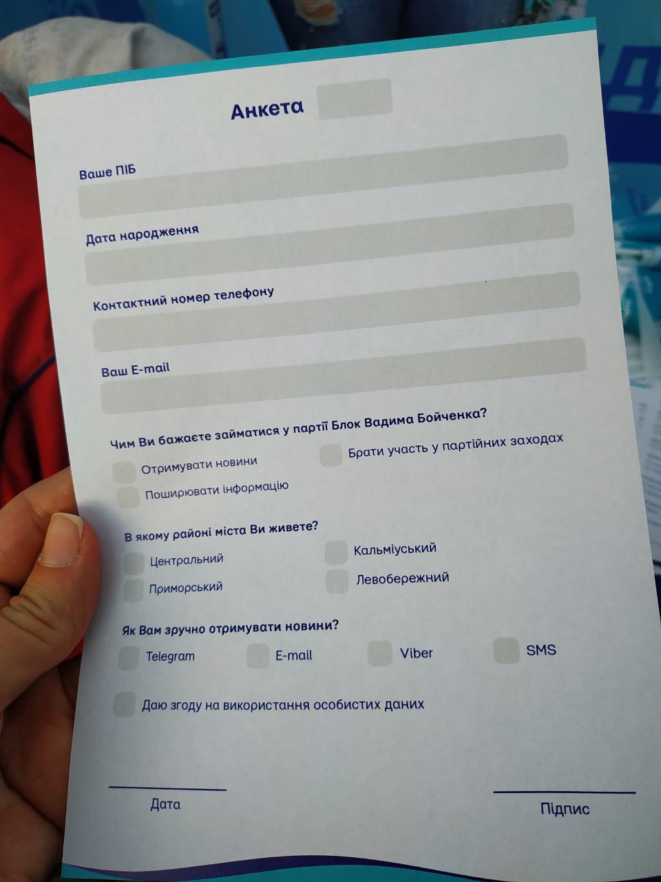 У місті Маріуполь, де кількість виборців в Донецькій області є найбільшою, і за даними сайту ДРВ на 31.08.20 складає 311 090 осіб, також пройшли з'їзди політичних партій. Найбільш масштабно провела масовий захід політична партія «Блок Вадима Бойченка». В центрі міста на Театральній площі у святковому форматі були представлені кандидати у депутати міських, селищних та сільських рад Маріупольського району. У розташованих на площі наметах мешканцям міста волонтери пропонували заповнити анкету з персональними даними, в обмін на неї видавали прапорці та ручки з символікою партії, а також бейдж з написом «карта прихильника Блоку Вадима Бойченка». Карта є нумерованою і з QR-кодом, номер кожної виданої картки прихильника волонтери відмічали в анкеті, а при скануванні мобільним телефоном з’являється посилання на офіційний сайт політичної партії.