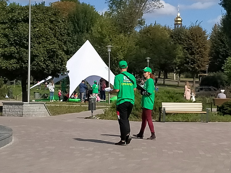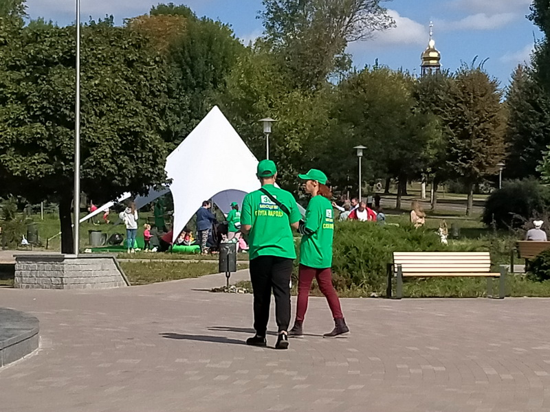 “Поки діти граються, Віктор Євдокимов спілкується з батьками. Також ходять люди, одягнуті у футболки та кепки з написами “Зе! місцеві слуга народу”, які проводять опитування серед містян, запитують про проблеми, які є в місті, в анкеті також просять вказати персональні дані: прізвище, ім'я та по батькові, адресу проживання і телефон”, – розповідає спостерігач ОПОРИ.