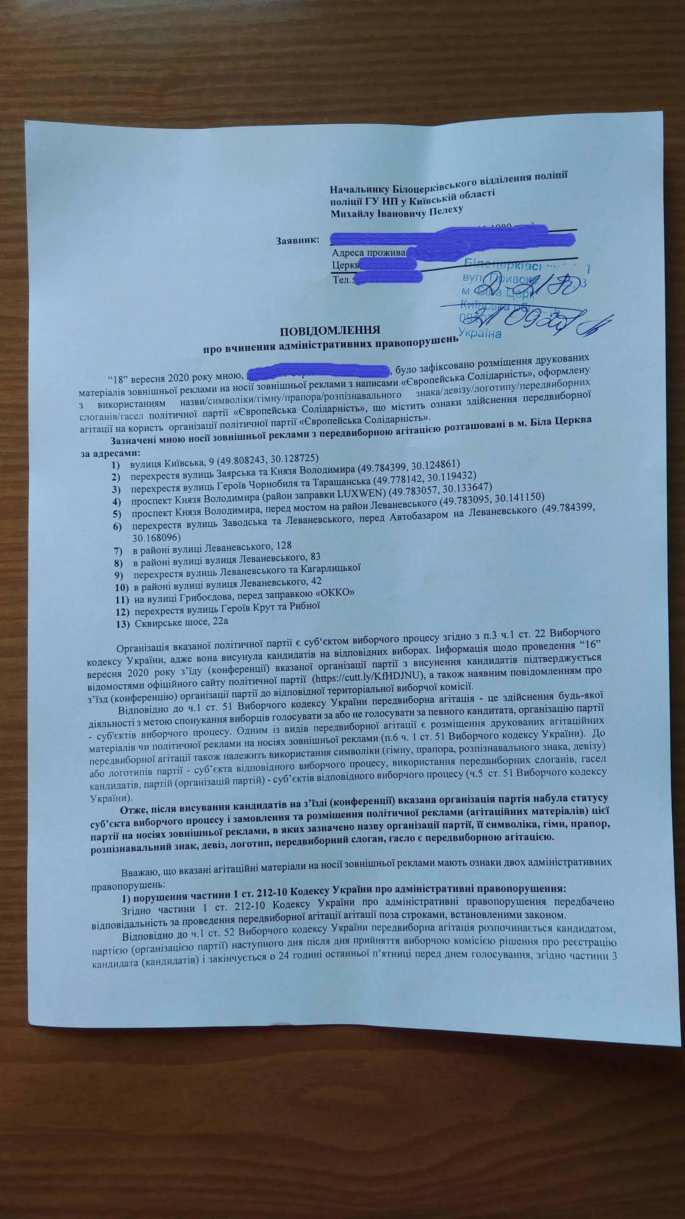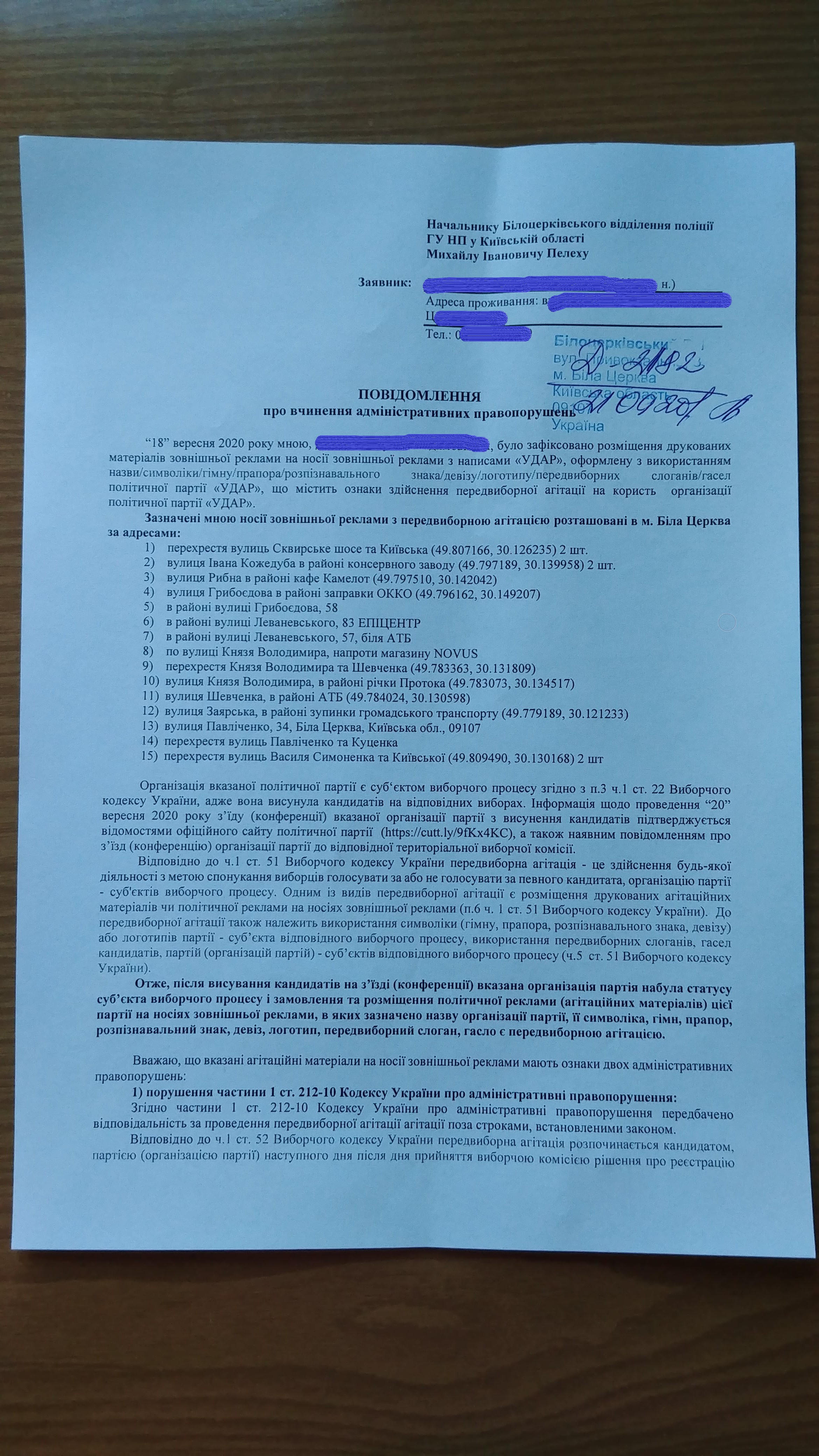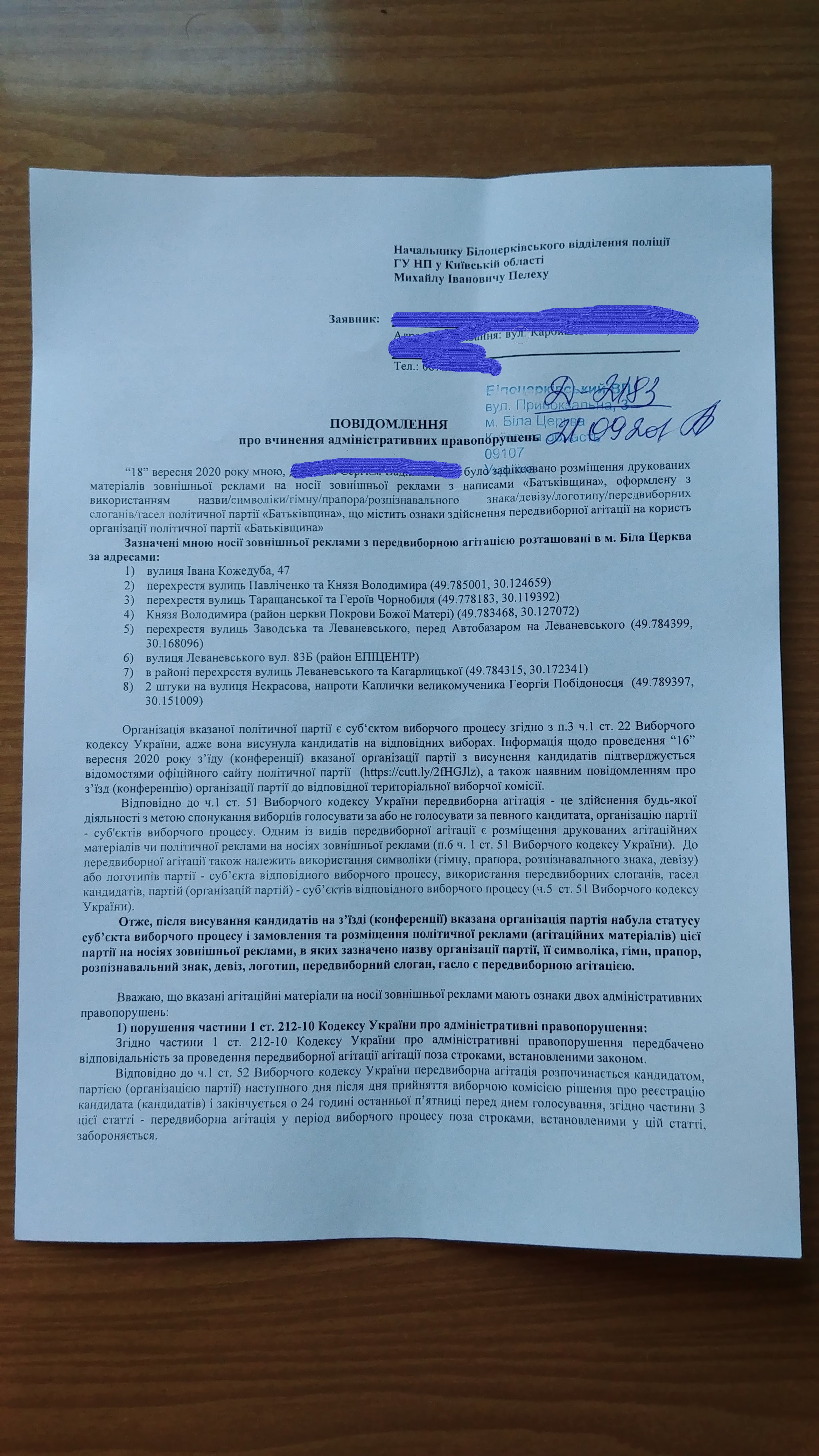 Щодо вищевказаних фактів спостерігач ОПОРИ подав заяву до Білоцерківського відділу поліції.