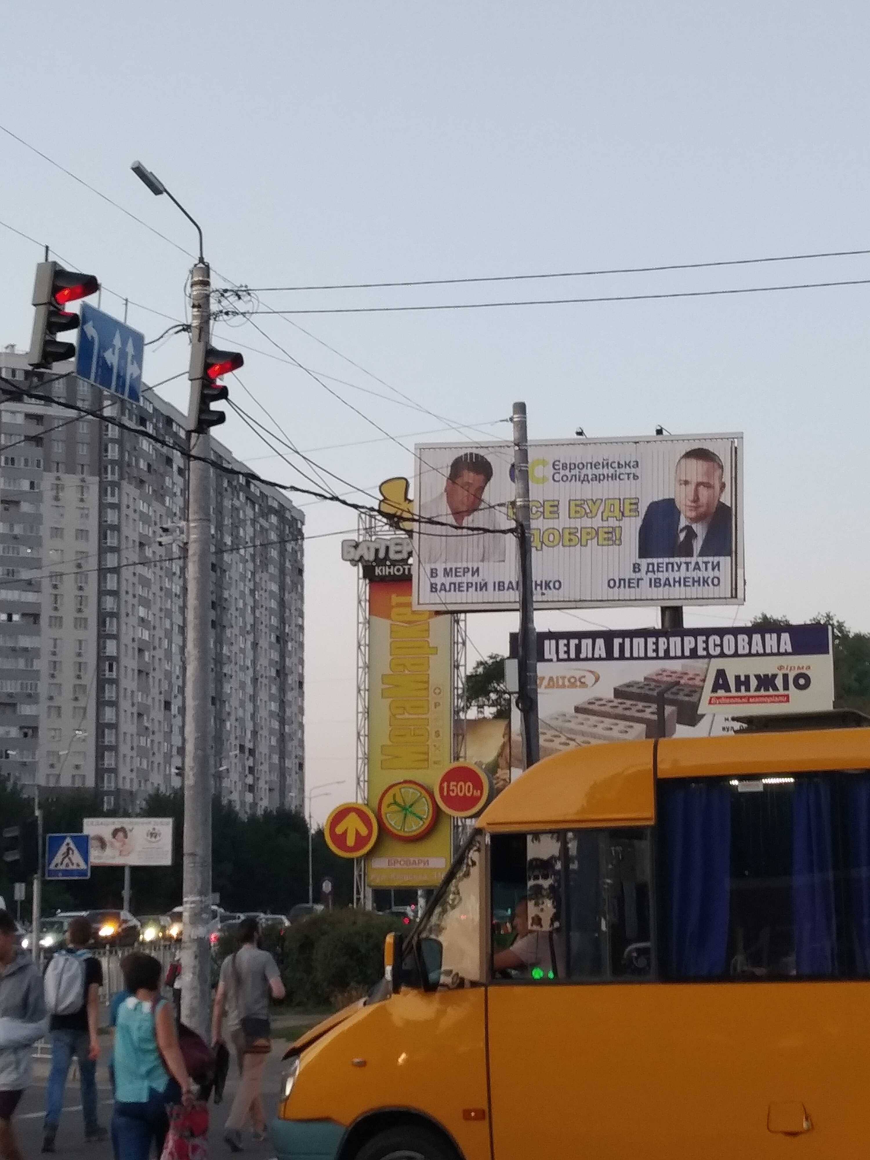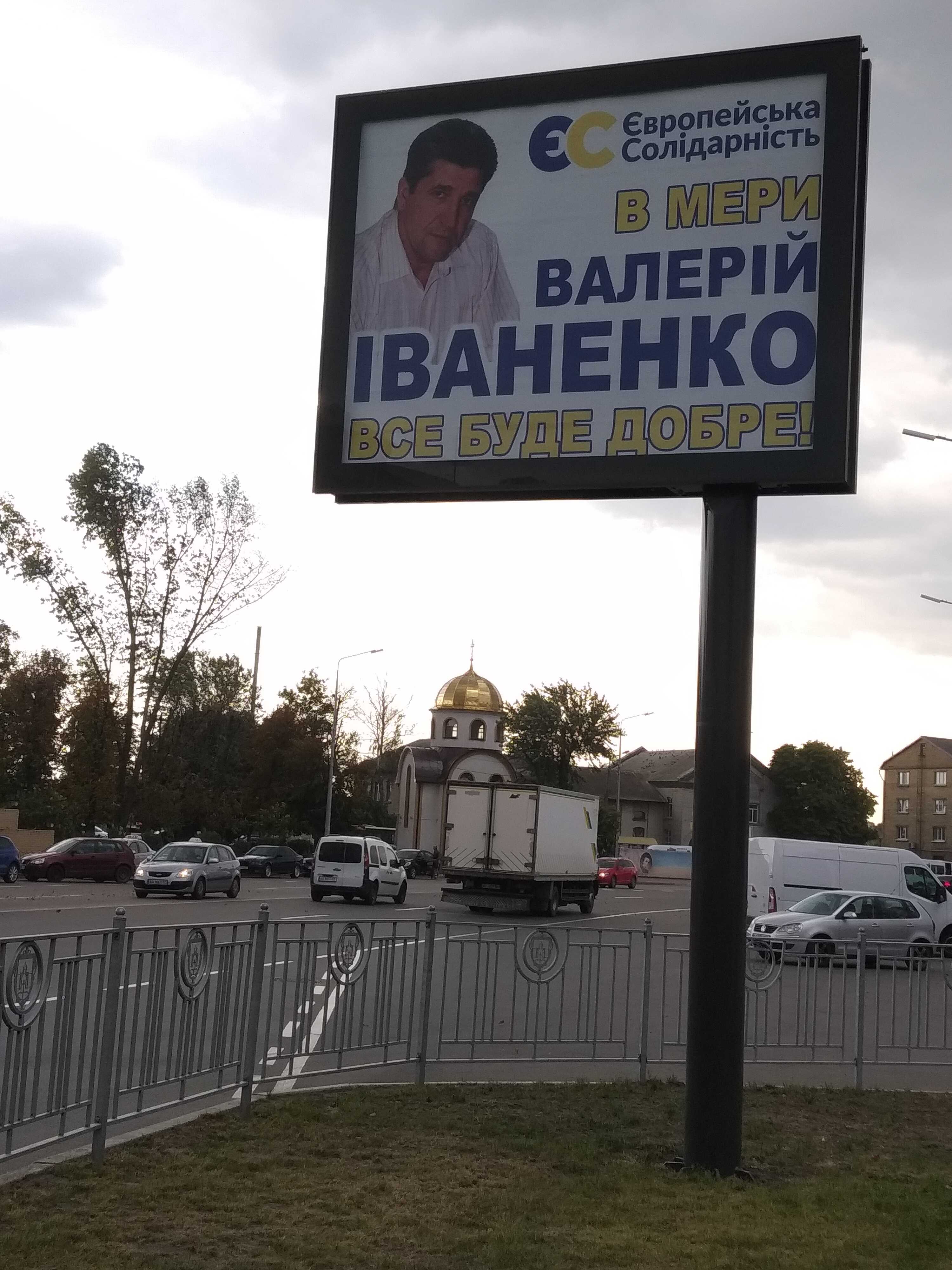 Також 19 вересня у місті Бориспіль спостерігач мережі ОПОРА виявив білборди «Слуга народу» та «Європейська солідарність» з порушенням умов ведення агітації, а саме ч.1 ст. 212-10 КУпАП (ведення передвиборчої агітації поза строками встановленими законом) та ч. 1 ст. 212 -13 КУпАП (виготовлення або замовлення виготовлення друкованих матеріалів передвиборчої агітації, які не містять відомості про установу, що здійснила друк).