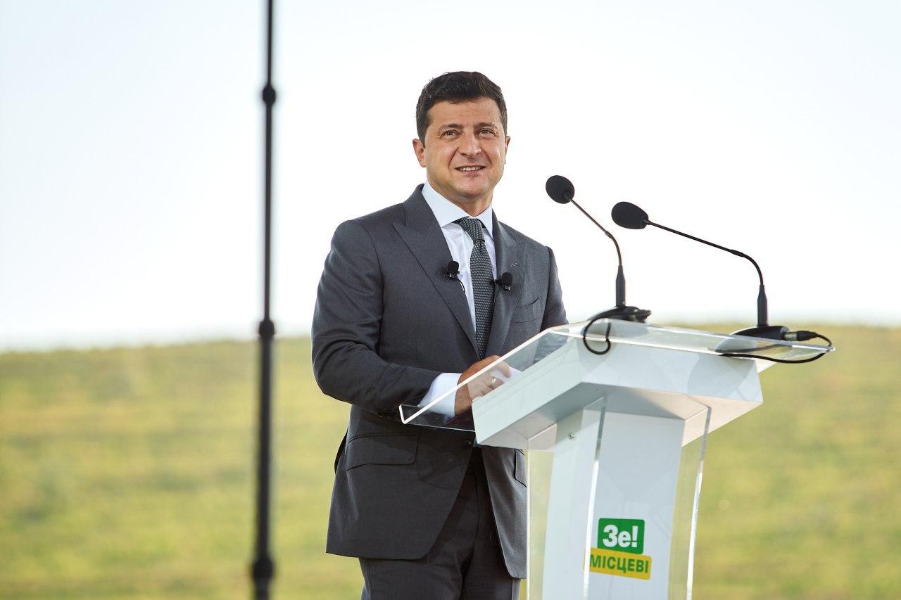 Також президент взяв участь у представленні Стратегії розвитку Закарпатської області. Під час представлення Стратегії розвитку Закарпатської області, яка відбулася у Берегівському районі близько 12:00, президент Володимир Зеленський та голова Закарпатської ОДА Олексій Петров виступали за трибуною, на якій було розміщено напис «Зе!місцеві» виготовлений у партійних кольорах політсили «Слуга народу». Також сцена на локації, де відбувалася презентація Стратегії, була облаштована написами «Зе!місцеві».