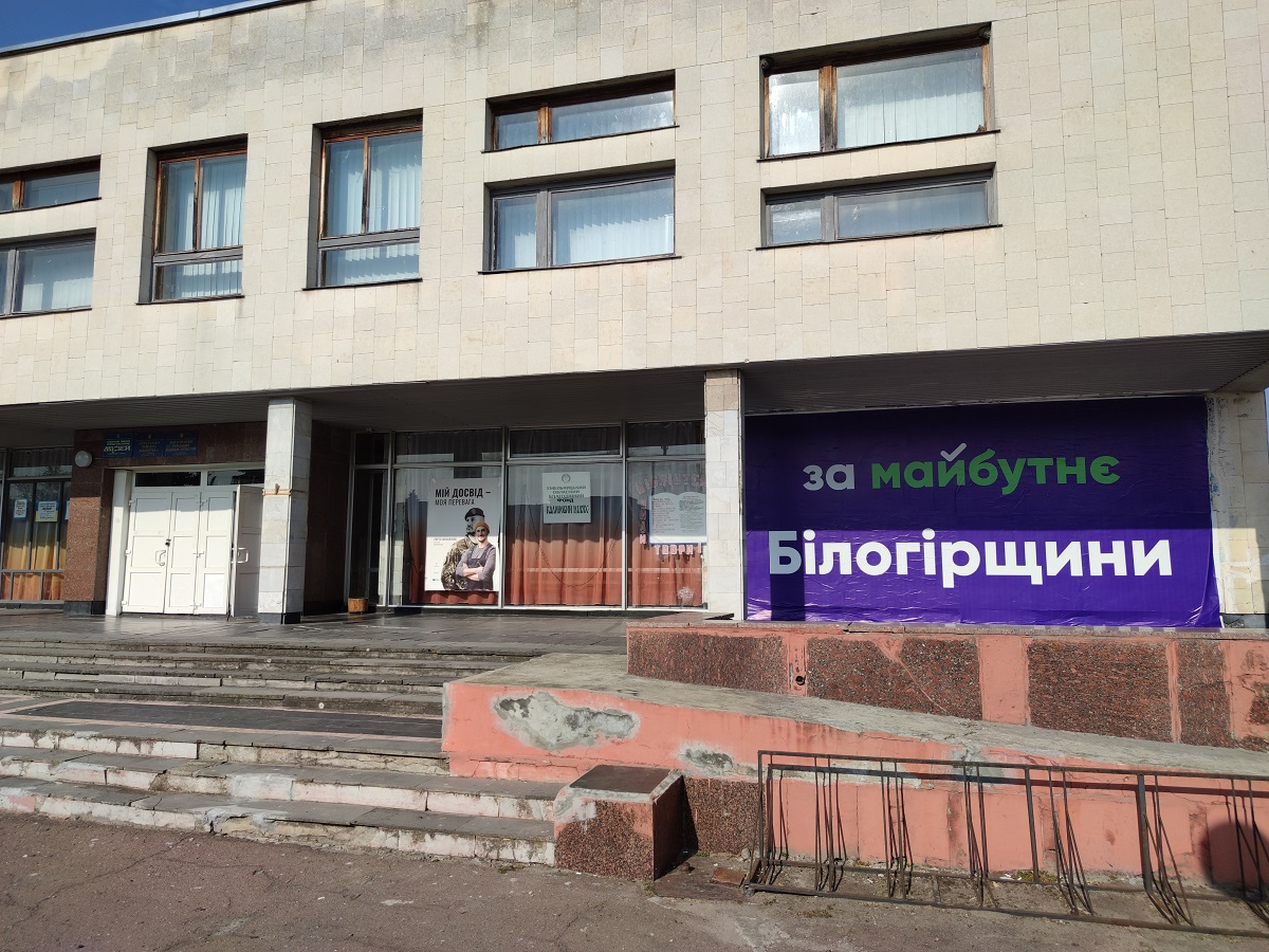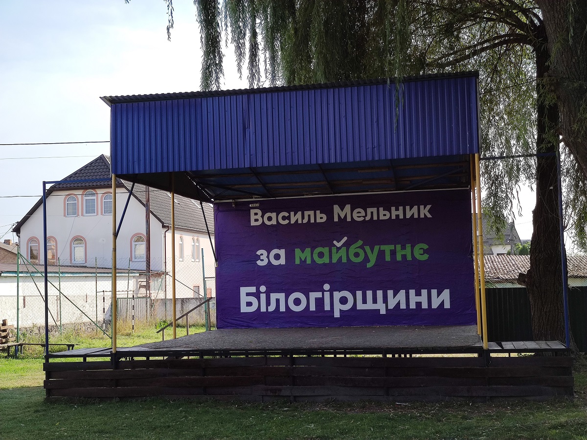 Як пояснила представнику ОПОРИ директорка будинку культури Анжела Дзицюк, вказівку розмістити банер на будівлі вона отримала від селищного голови Василя Мельника. До слова, 18 вересня у Білогір’ї відбувся форум партії «За майбутнє». Саме до цієї події реклама політичної сили з’явилася на фасаді будинку.