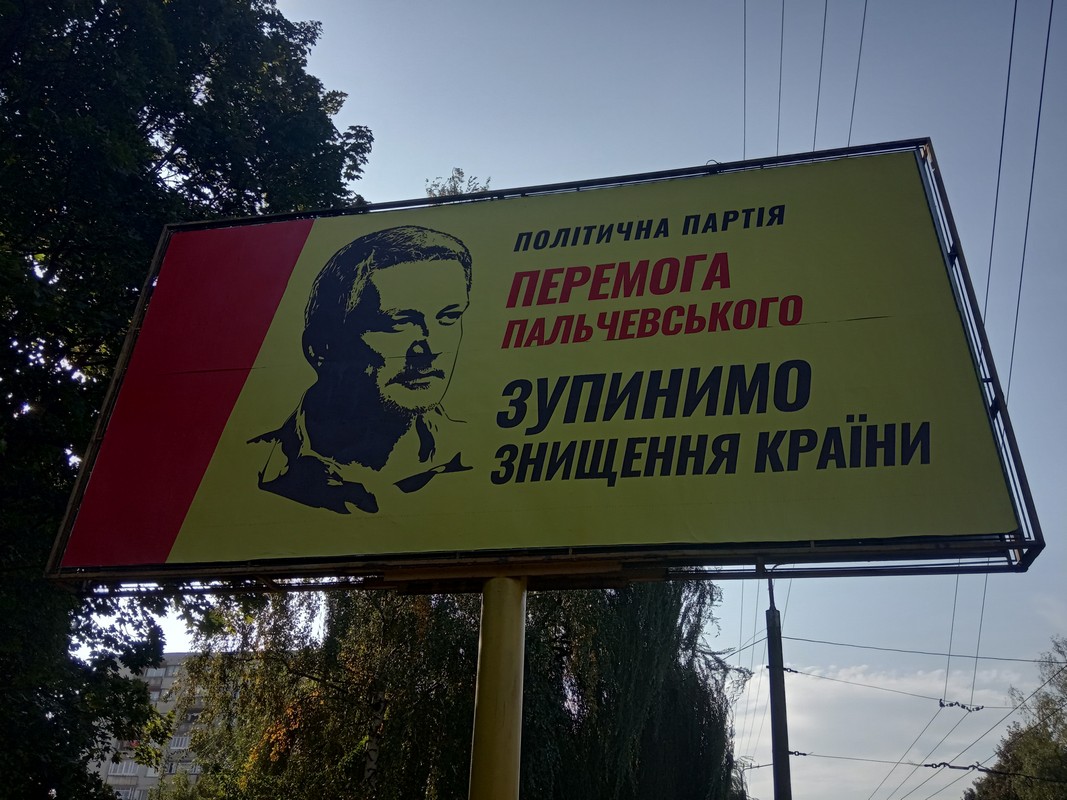 23 вересня спостерігачка ОПОРИ також зафіксувала у Луцьку чотири білборди із рекламою партії «Перемога Пальчевського». Вони містили назву політ сили, стилізоване зображення лідера партії Андрія Пальчевського та гасло «Припинимо знищення країни». Аналогічний білборд спостерігач зафіксував у місті Ковелі 24 вересня.