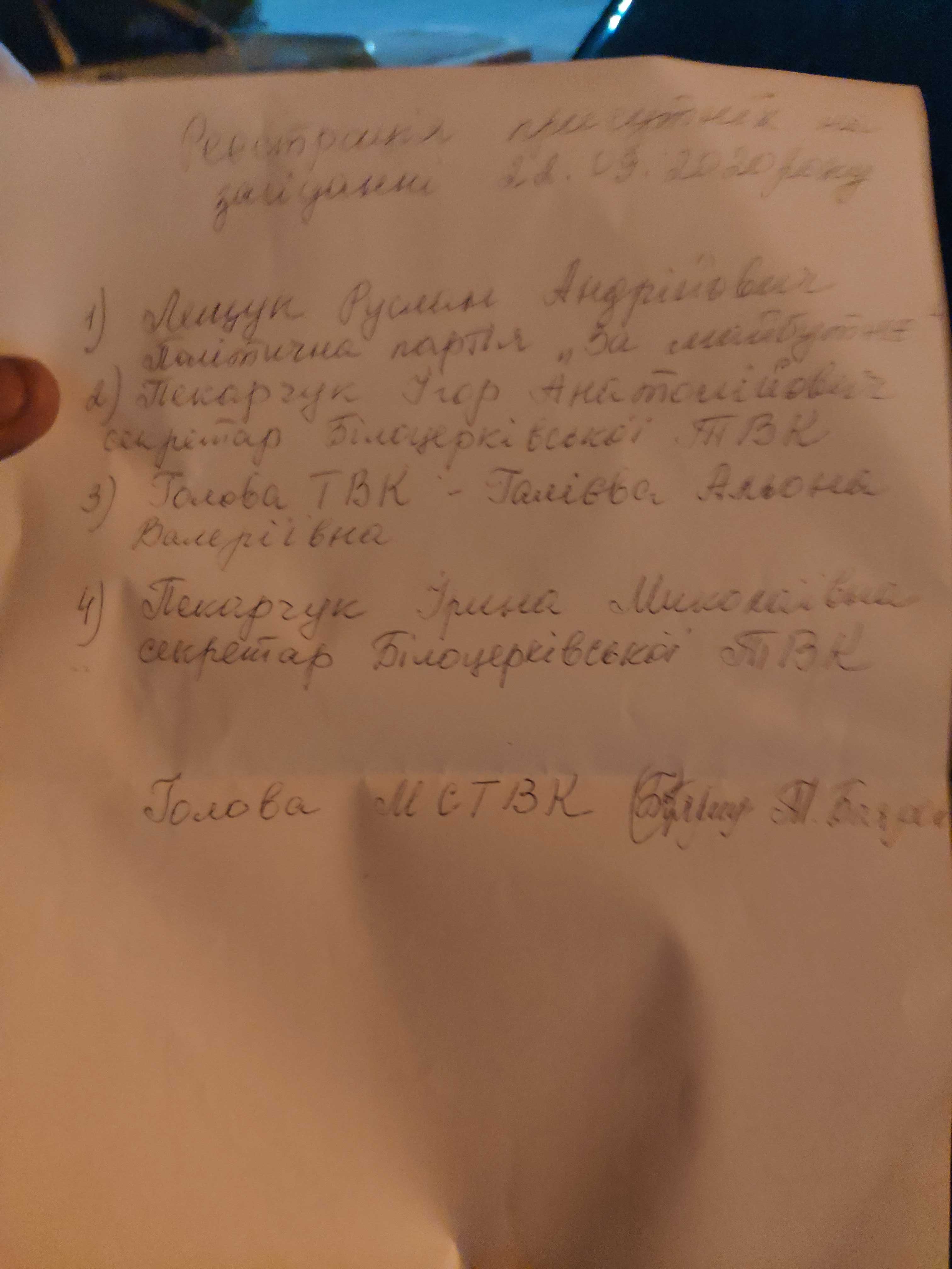 Документ про прийняття документів вони отримали вже 25 вересня, в 00:20, тоді ж Броварська міська ТВК завершила свою роботу.