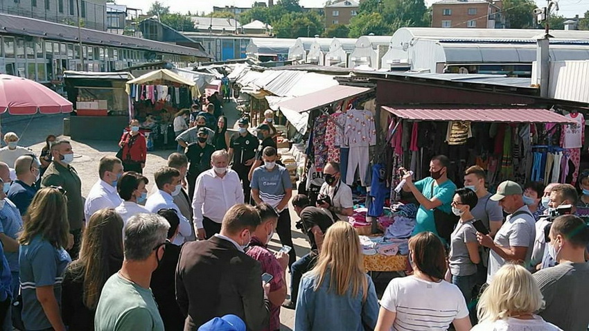 З Житомира Філатов разом з Сергієм Сухомлином поїхали до Бердичева, де на місцевому ринку зустрілись з підприємцями.