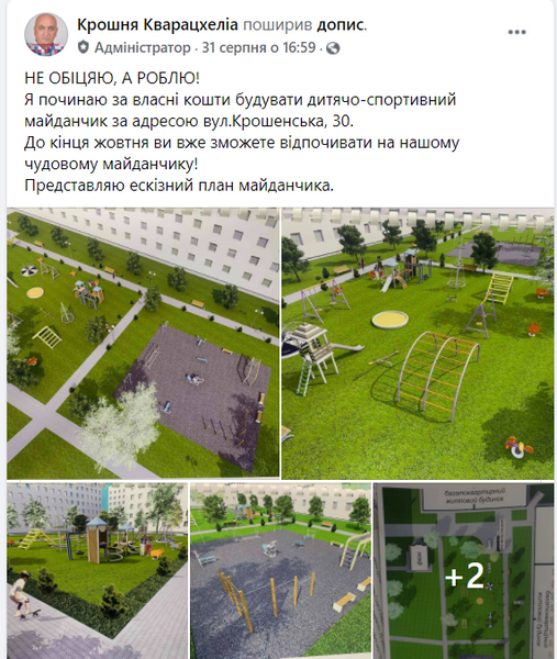 У Житомирі потенційний кандидат в депутати Годердзі Кварацхеліа облаштовує парк, будує дитячий і спортивний майданчики в мікрорайоні Крошня, організовує акцію і разом з місцевими жителями висаджує іменні туї.