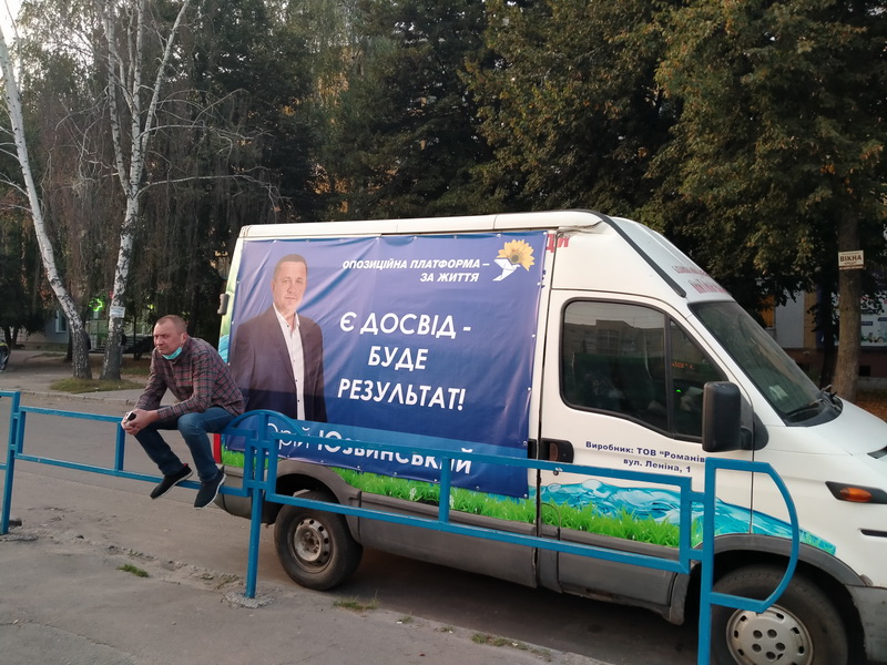 Окрім рекламних конструкцій, плакати із зображенням потенційних кандидатів розміщують на дверях гаражних приміщень, на балконах, автомобілях, старих будівлях, зупинках, приміщенні автовокзалу, в мережі магазинів, власниками яких є потенційні кандидати.