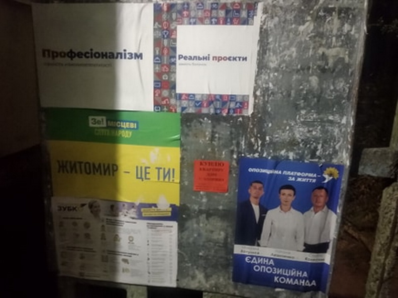 Після 5 вересня і офіційного старту виборчого процесу потенційні кандидати додали змісту політичної реклами партійних кольорів та лозунгів. Наприклад партія “Пропозиція” обмежилась словом чи словосполученнями на білому фоні, “Слуга Народу” звертається до виборців із закликами “Житомир – це ти!”. Більшість потенційних кандидатів розміщують своє фото та лозунги чи заклики.