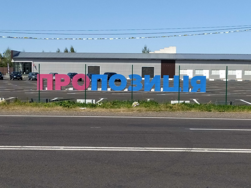 Біля торгового комплексу, який належить потенційному кандидату від партії “Пропозиція” Годердзі Кварацхеліа, розмістили інсталяцію з назвою партії.