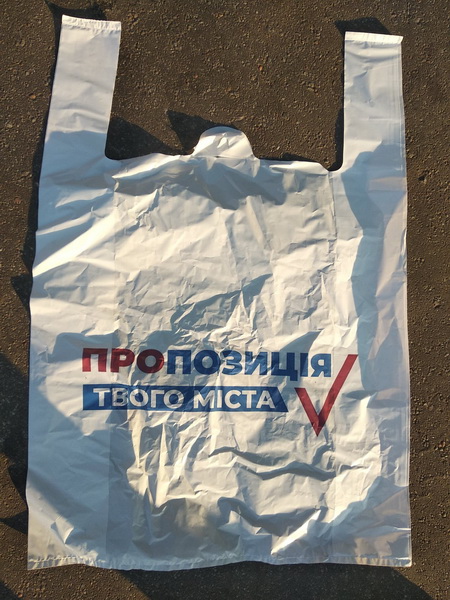 Також спостерігачі ОПОРИ виявили, що в мережі магазинів “Полісся Продукт”, власником яких є потенційний кандидат від “Пропозиції” Олександр Ракович, продають пакети з написами “Пропозиція твого міста”.