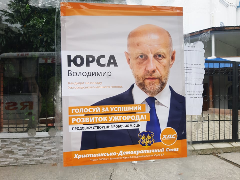 Зокрема, на автобусних зупинках спостерігачі зафіксували агітаційні плакати із символікою партій ВО «Батьківщина», «Слуга народу», «Пропозиція», «Рідний дім» та іменем чинного міського голови Ужгорода та кандидатом на цю посаду Богданом Андріївим. Також на зупинках транспорту в Ужгороді невідомі розміщують листівки кандидата на міського голову Ужгорода Володимира Юрси.