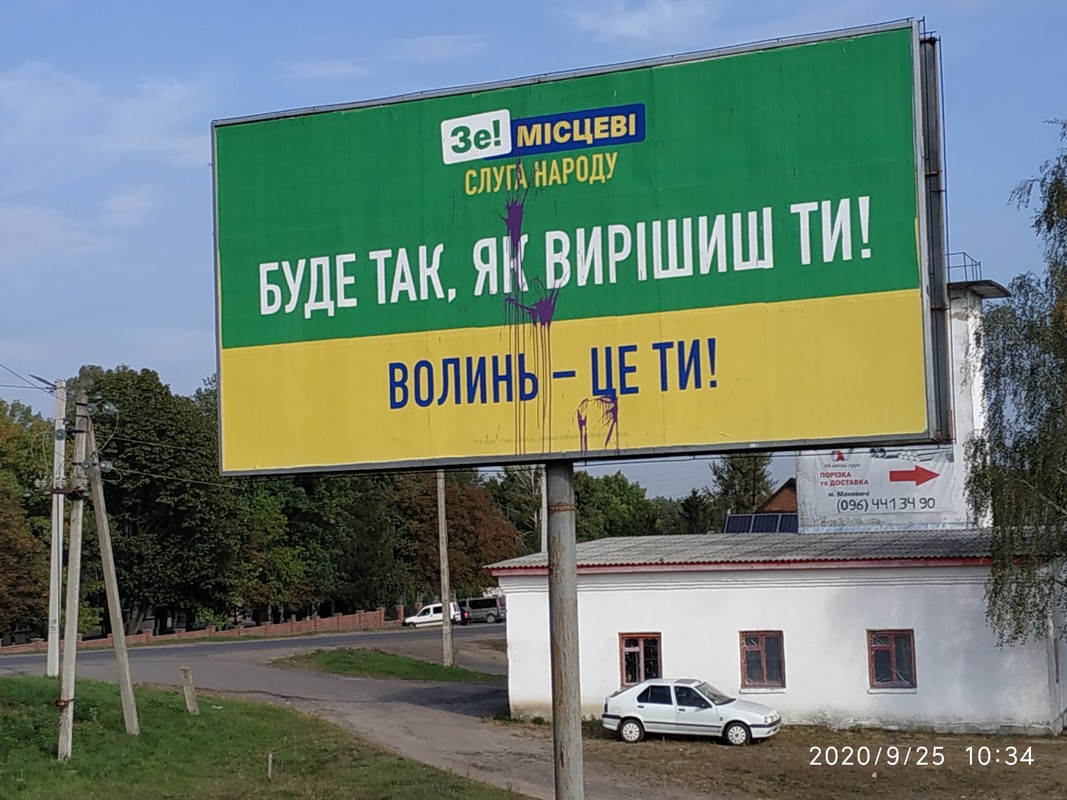 Зауважимо, що в інших населених пунктах ОПОРА виявляла поодинокі пошкодження рекламної продукції на користь політичних партій й раніше. Зокрема, 25 вересня на вулиці Луцькій у селищі Маневичі виявили білборд «Зе! Місцеві. Слуга народу. Буде так, як вирішиш ти! Волинь – це ти!», зіпсований аналогічним чином.