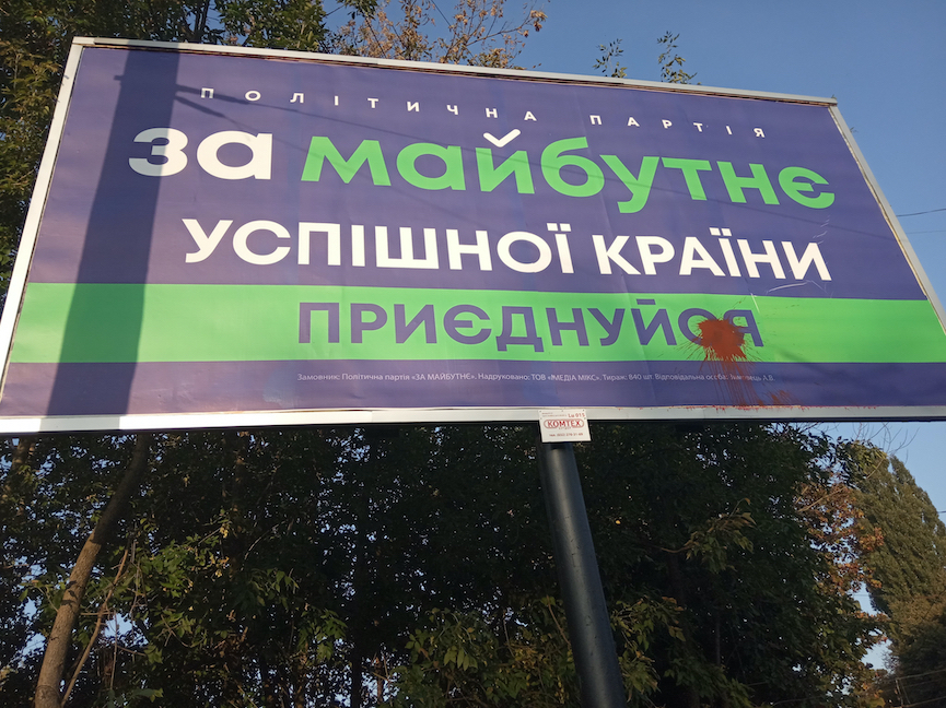Також 23 вересня у Луцьку на вул. Парковій було виявлено зовнішню рекламу політичної партії «За майбутнє», заляпану червоною фарбою.