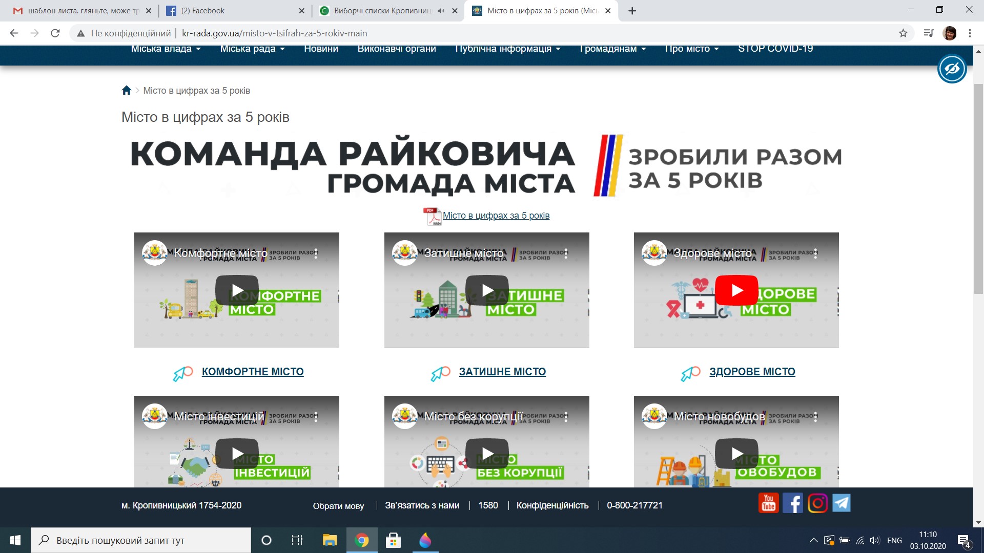 На сайті міськради Кропивницького напередодні виборів створили спеціальну вкладку «Команда Райковича. Громада міста/Зробили за 5 років». За посиланням розмістили низку відео про роботи ради за п’ять років. Також можна зайти на текстовий документ, у якому розміщений короткий звіт з різних галузей. В обласному центрі розмістили низку білбордів з написом «Команда Райковича. Громада міста/Зробили за 5 років». На частині з них звітують про різні галузі, зокрема про будівництво у місті «арки», ЦНАПу, 2 мостів, багатоповерхівки на Жадова та ремонт доріг. Андрій Райкович анонсував на власній сторінці у соцмережах, що проводитиме звіти-зустрічі у мікрорайонах Кропивницького.