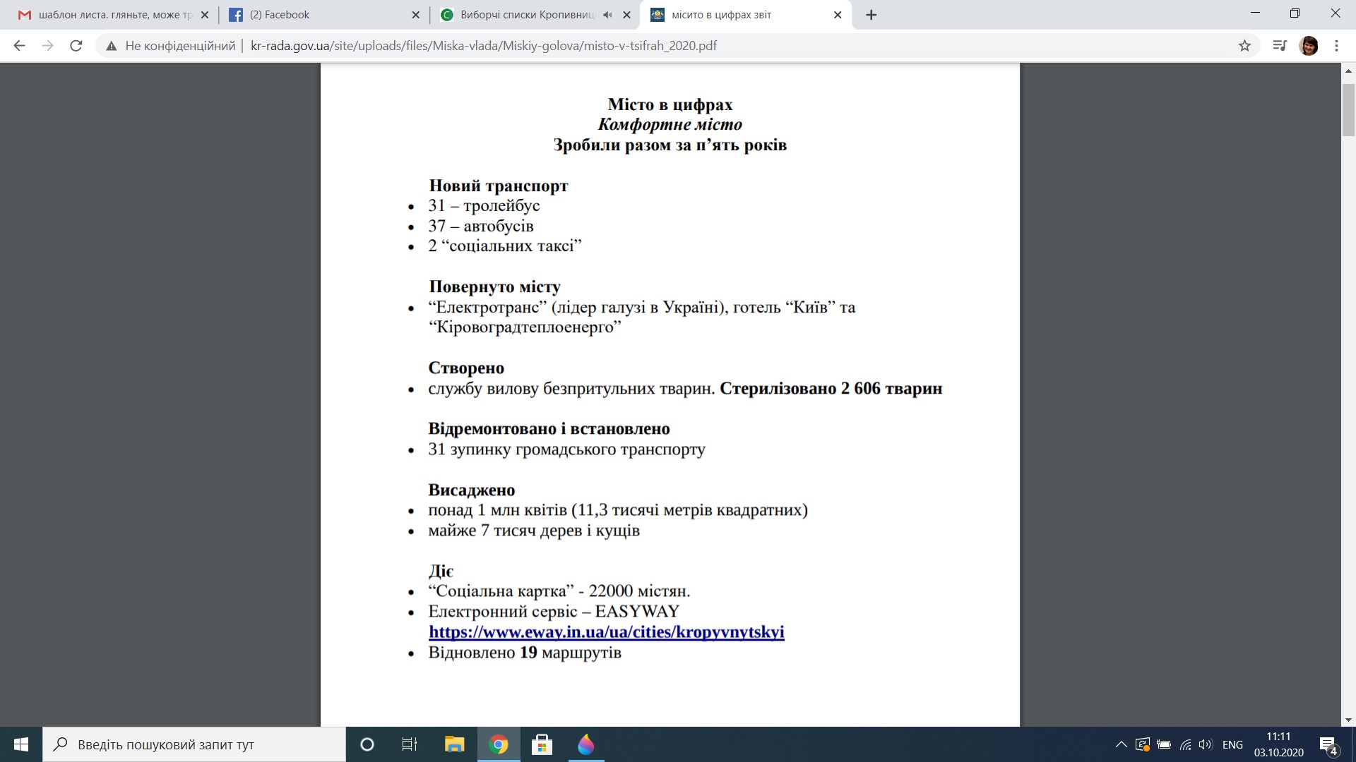 На сайті міськради Кропивницького опублікували відеозвіт із гаслом «Команда Райковича». Цей же слоган використовують у агітаційній кампанії політичної партії «Пропозиція». На сторінці Гайворонської міськради у Фейсбук розмістили інформацію про те, що чинний міський голова балотується. А на сторінці Устинівської селищної ради опублікували передвиборчу програму чинного селищного голови. Про це повідомляють спостерігачі ОПОРИ.