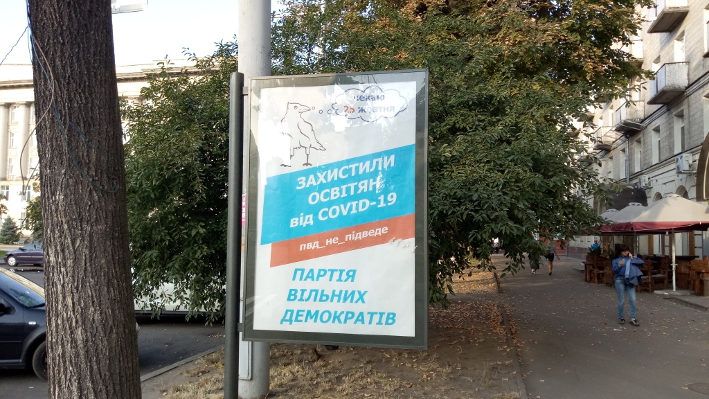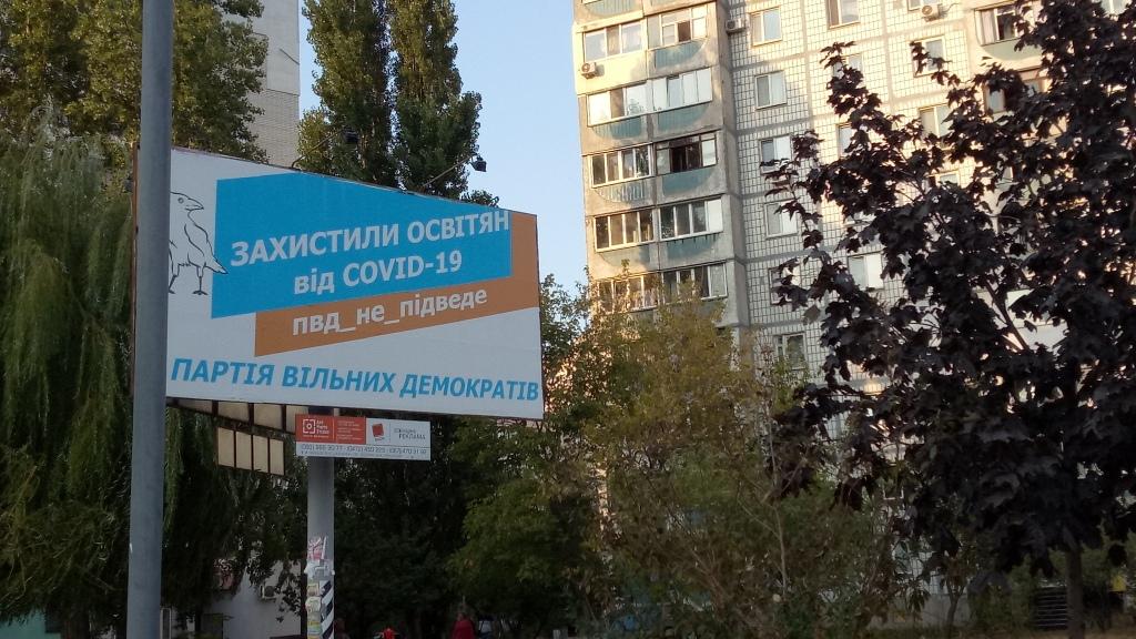 Орієнтовно за адресою Гагаріна 47 був розміщений білборд без вихідних даних “Партії вільних демократів”. Також спостерігачі зафіксували щонайменше два сітілайти партії без вихідних даних за адресою Лазарєва 4.