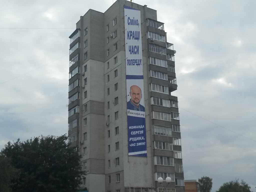 25 вересня в Черкасах представники ОПОРИ зафіксували агітаційні куби партії “Наш край” без вихідних даних, розміщені на перехрестях уздовж бульвару Шевченка та біля річкового вокзалу. Також спостерігачі зафіксували на розі вулиць Хмельницького та бульвару Шевченка білборд із зображенням кандидата на посаду міського голови Черкас від партії “Голос” Віктора Євпака та написом “Твій голос змінює все” без відомостей про особу-замовника, установу, що здійснила друк та тираж. Окрім того вздовж бульвару Шевченка між вулицями Остафія Дашкевича та Байди Вишневецького розміщені щонайменше три сітілайти партії “Національний корпус”, а орієнтовно за адресою Гагаріна 43  і білборд, що також порушує вимоги ч. 13 ст. 57 Виборчого Кодексу.