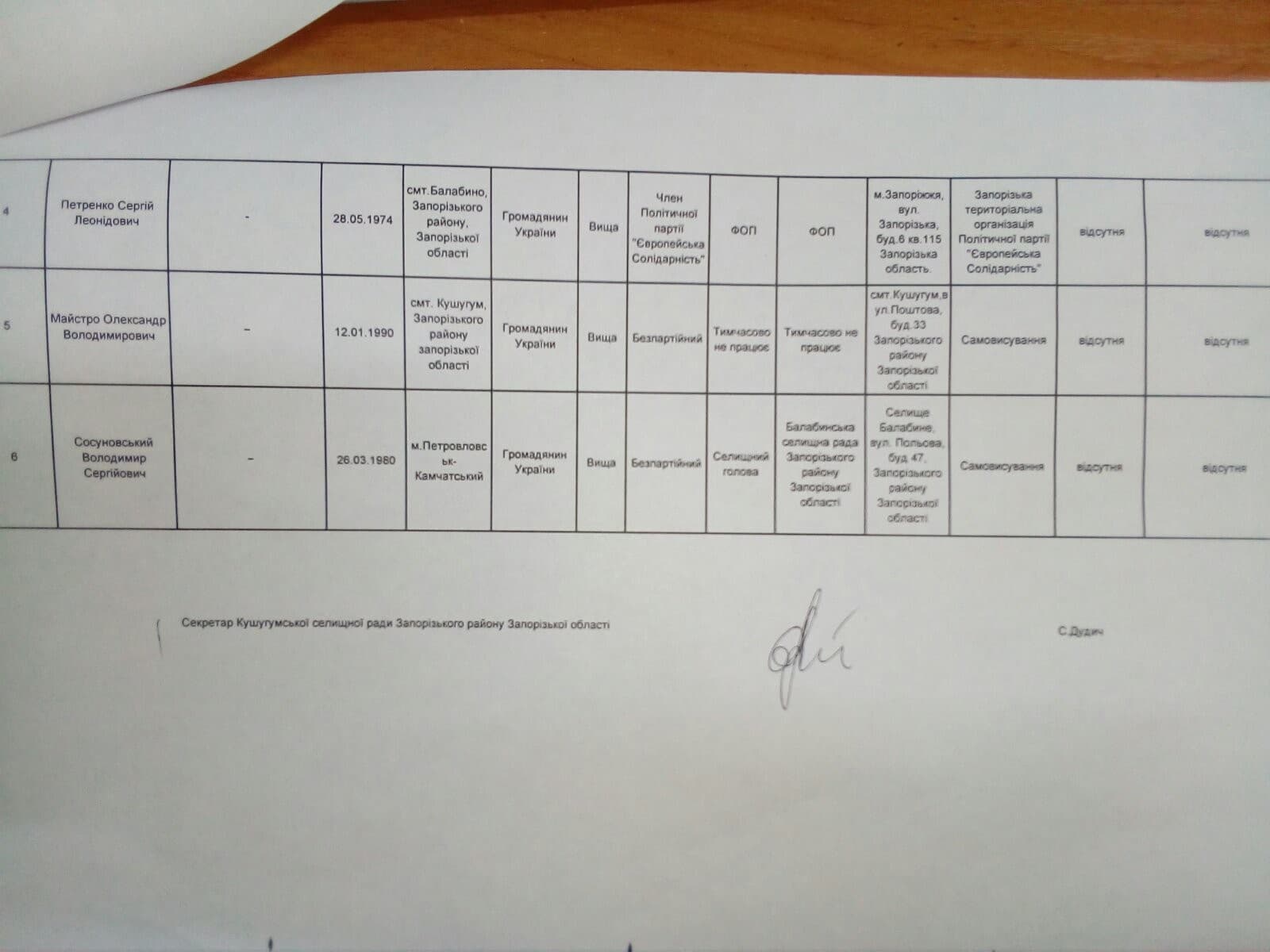 Кушугумська селищна ТВК  також зареєструвала двох кандидатів-однофамільців з прізвищем – Майстро.