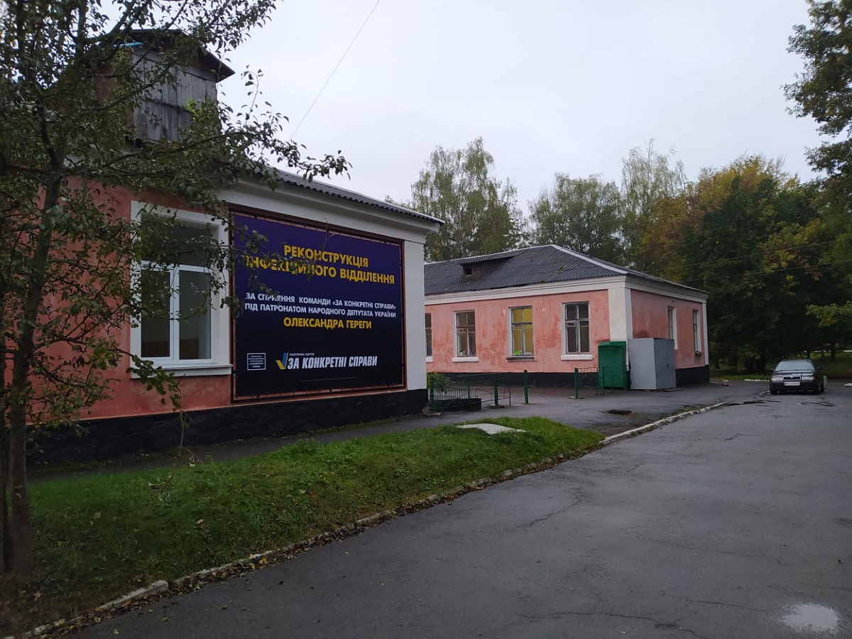 У місті Шепетівці Хмельницької області на будівлі інфекційного відділення центральної районної лікарні розмістили банер з інформацією про реконструкцію відділення «за сприяння команди «За конкретні справи», від якої до Хмельницької обласної ради балотується головна лікарка закладу. Про цей факт ОПОРА повідомила до поліції.