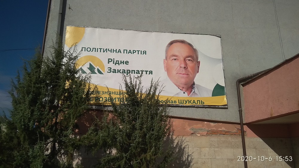 У Виноградові 6 жовтня спостерігач ОПОРИ зафіксував розтяжку із символікою партії «Рідне Закарпаття» без вихідних даних, яку розтягнули вздовж дороги, що є порушенням частини 11 статті 57 Виборчого кодексу.