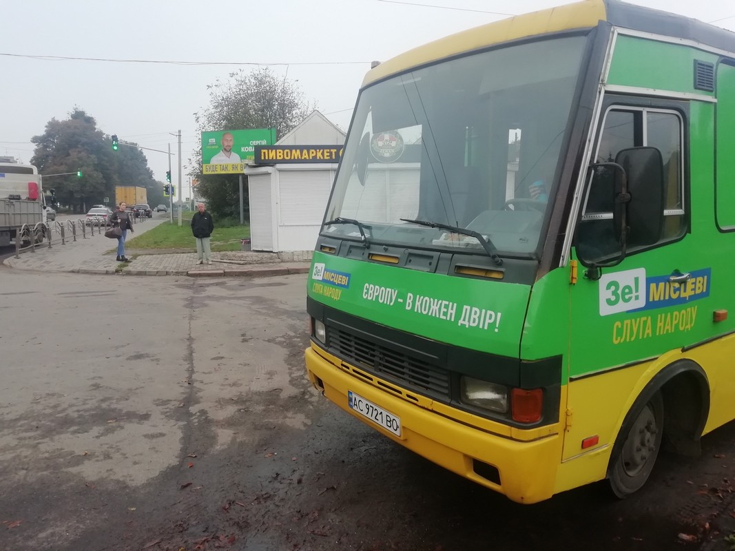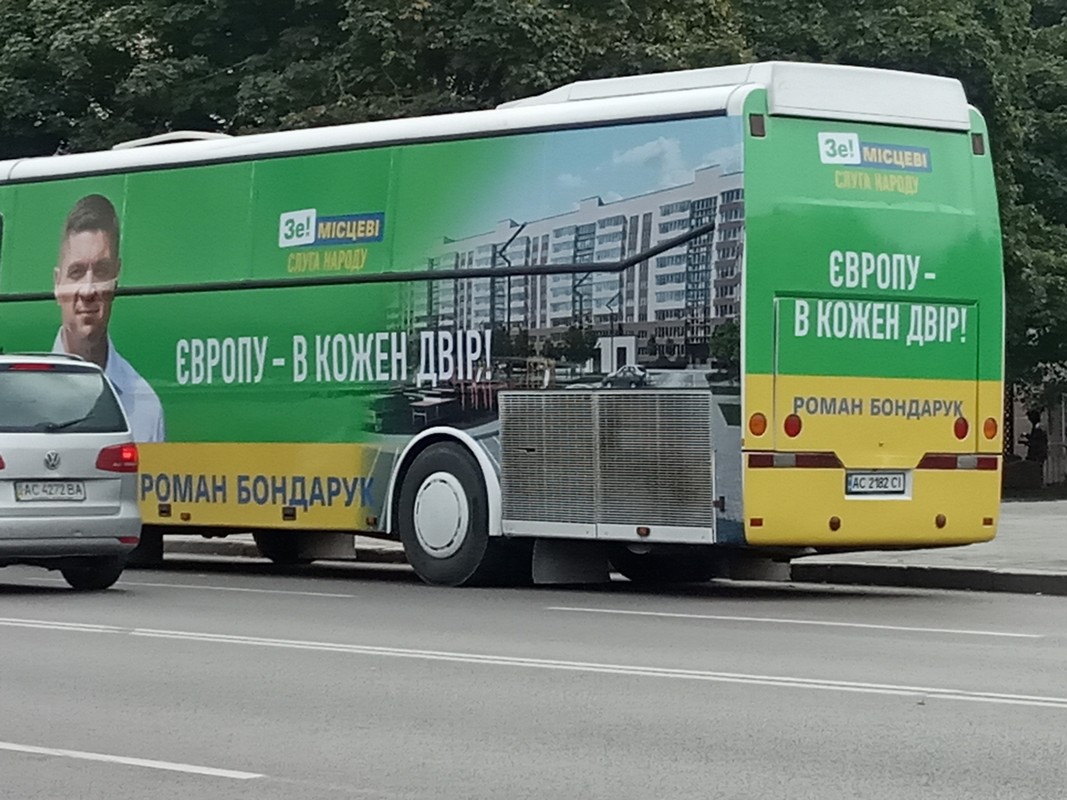 Разом з тим, 9 жовтня поблизу кінцевої зупинки громадянського транспорту на вулиці Володимирській спостерігач ОПОРИ зафіксував автобус «Богдан», аналогічний до тих, які возять пасажирів луцькими маршрутами, обклеєний агітматеріалами на користь кандидата на посаду Луцького міського голови Романа Бондарука. Однак сам автобус не містив таблички, яка б свідчила про те, що він здійснює пасажирські перевезення. Згодом правоохоронці підтвердили ОПОРІ, що автобус не є рейсовим.