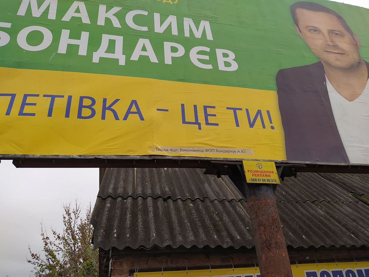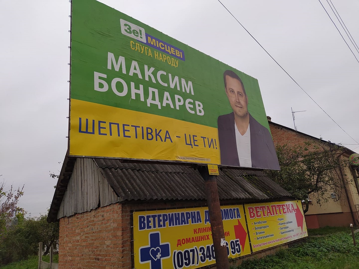 А в Шепетівці вихідні відомості з’вилися на білбордах ВО «Батьківщина», які ще донедавна не відповідали вимогам виборчого законодавства. Крім того, неповні вихідні дані доклеїли на білборд кандидата на посаду шепетівського міського голови Максима Бондарєва.