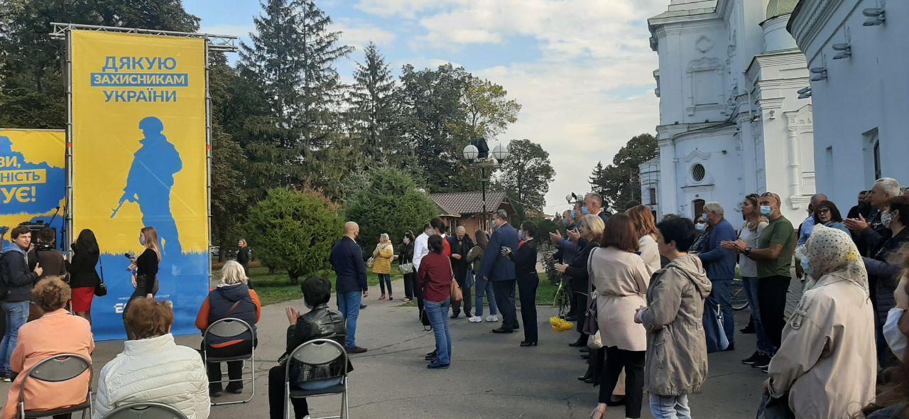 У Полтаві представники партії «Європейська солідарність» організували акцію «Дякую захисникам України». Анонсували захід у Facebook. О 13.00 відбулася панахида у Свято-Успенському соборі ПЦУ. З 14.00 на сцені біля цього ж храму розпочався концерт за участю переможниці одного з вокальних телешоу Оксани Мухи, гурту «Пікардійська терція» та ін. Між музичними виступами на сцену запрошували представників політичної сили: народних депутатів Миколу Княжицького, Ніну Южаніну (очільниця Полтавської обласної організації «Європейської солідарності»), Андрія Карпова (кандидата на посаду Полтавського міського голови), Яніну Барибіну (кандидатку у депутати обласної ради) та інших. Крім того, люди у брендованих жилетах роздавали агітаційні газети політсили.