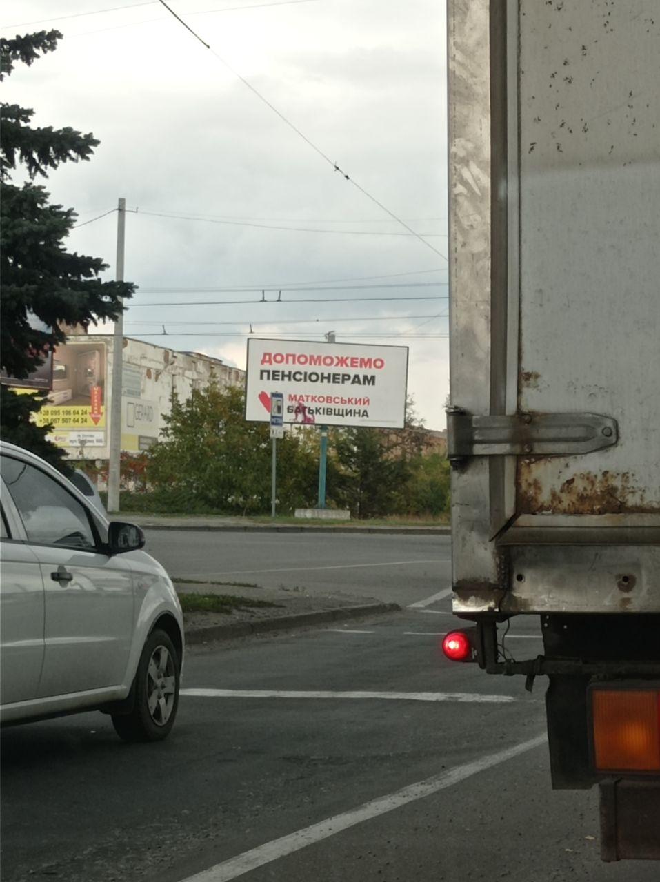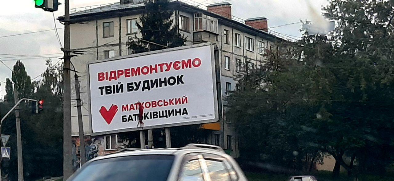 Спостерігачі ОПОРИ зафіксували також пошкоджені червоною фарбою білборди кандидата на посаду Полтавського міського голови від ВО «Батьківщина» Андрія Матковського. Пошкодили кілька  агітматеріалів у різних районах міста.