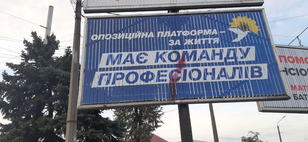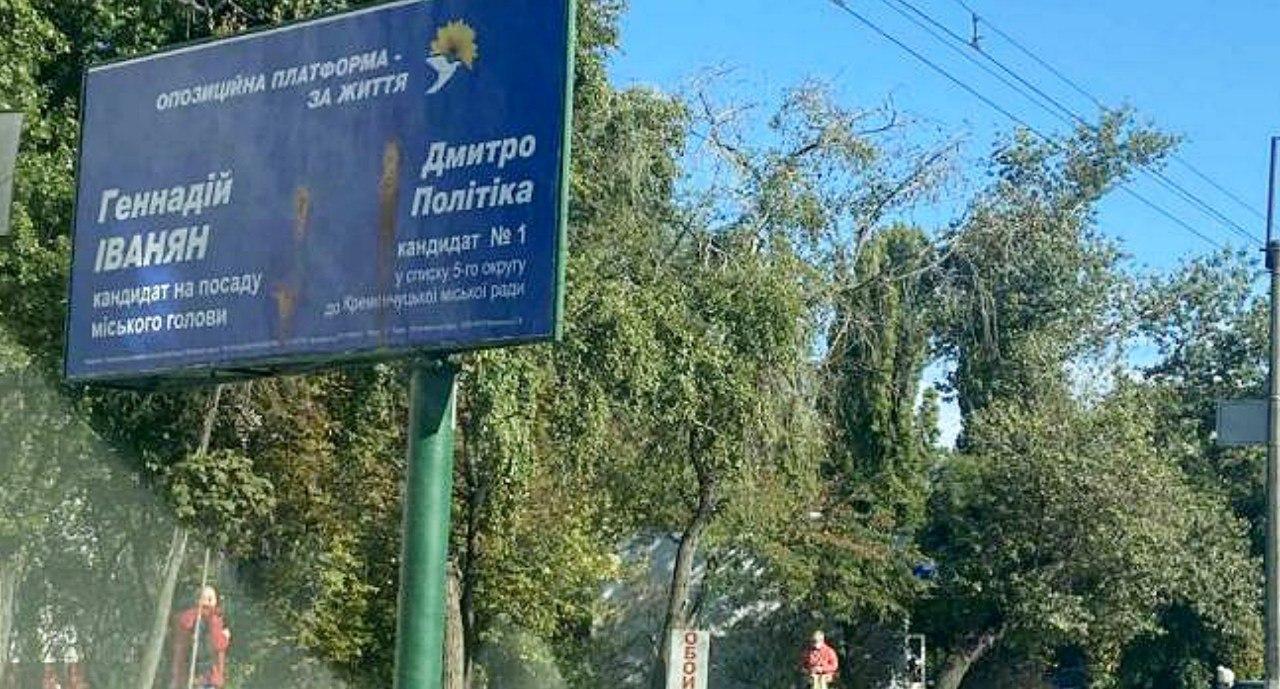 Пізніше фарбою пошкодили білборд з рекламою кандидатів від ОПЗЖ на посади Кременчуцького міського голови та у депутати міської ради.